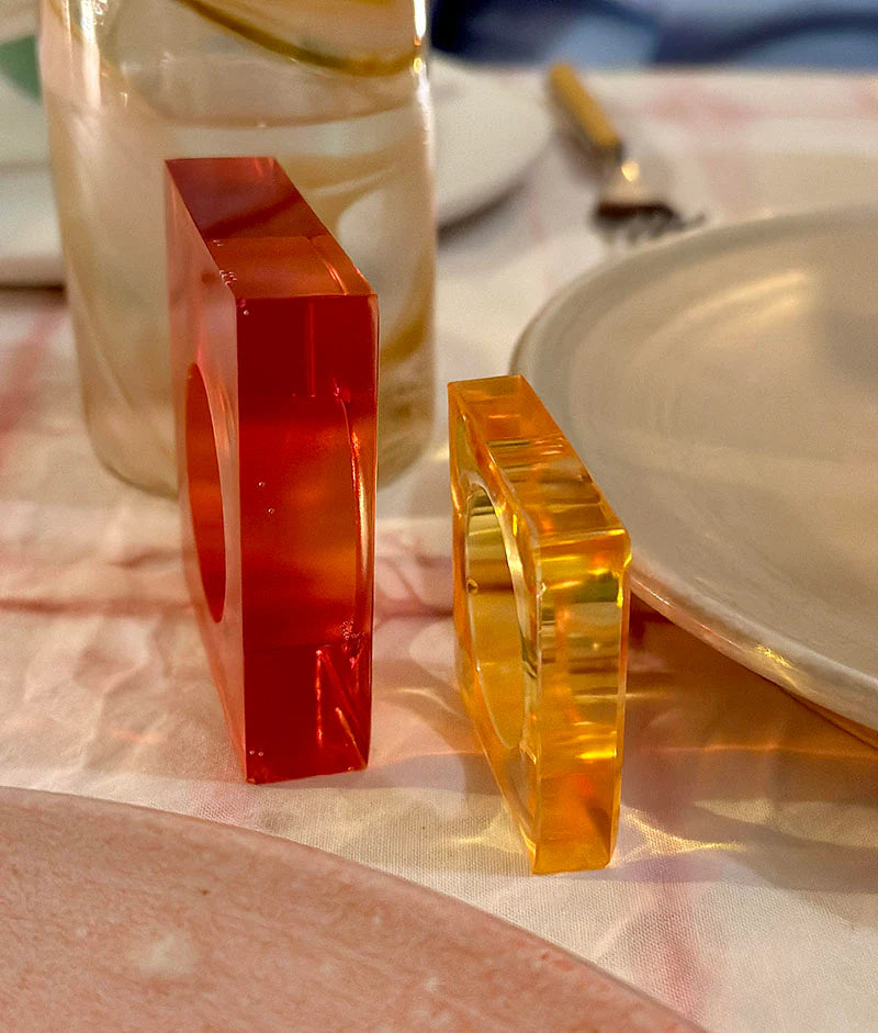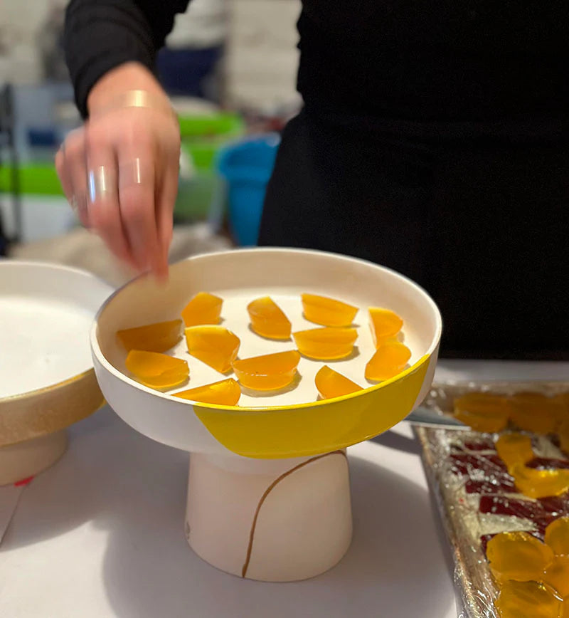 Ginger and marigold jellies in a serving vessel by Fefo Studio.