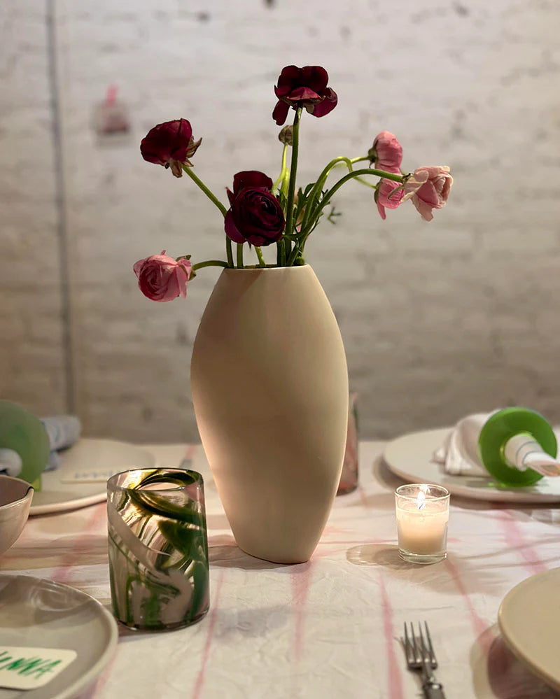 In keeping with the evening’s mission, the venue was held at the Chinatown studio space of maker Kalen Kaminski, who runs the tie dye–inspired brand Upstate. Celebrated chef Lauren Gerrie, handled the food, crafting a market-driven menu inspired by the colors and textures of the night’s participating makers.