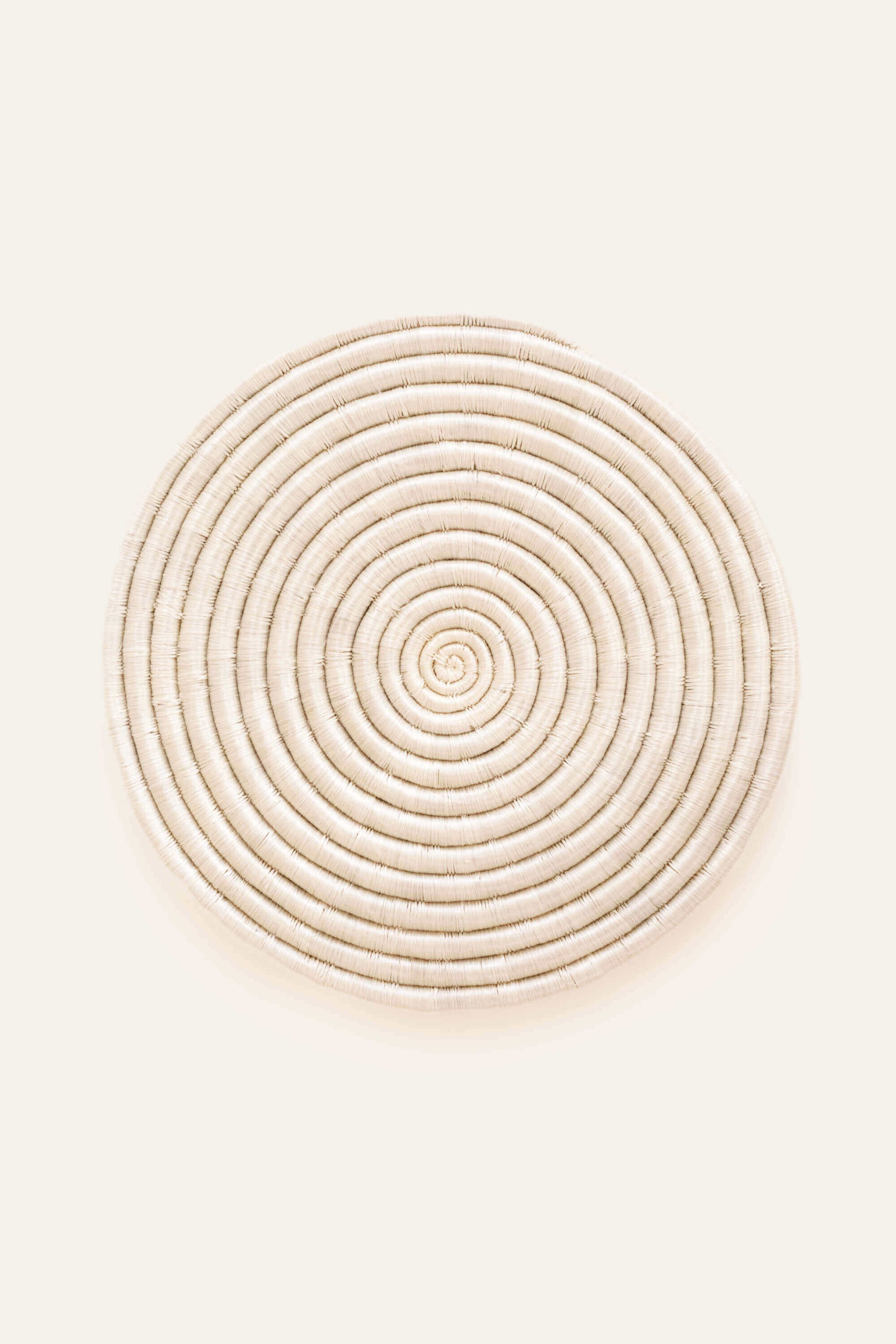 Our classic placemat now in a new color! Use as a centerpiece or buy several for a unique table setting. Sold individually so you can mix, match and create your perfect collection. Our placemats are handcrafted in Rwanda with a time-honored weaving technique passed down from generations of artisans. 12" Diameter Sold Individually White Handwoven with locally sourced sisal Includes a loop on the back for easy hanging The ideal housewarming gift and the perfect material for both outdoor and indoor dining, this White Sisal Placemat adds a nice touch to any tabletop! *Due to the handmade quality, some size and color variation may occur. Impact The artisan sector is the second largest employer in the developing world. Yet the majority of artisans are women who lack access to export markets, business skills, and the financial tools needed to run successful, global enterprises. We are dedicated to changing that by investing 100% of our profits into education programs for the women who handcraft our products and youth in their communities. Since 2007, we've provided over 1,100 artisans and 250 young people in Rwanda & Ghana with employment opportunities, entrepreneurship training, and consistent access to the global export market. That's Impact. Care Instructions spot clean