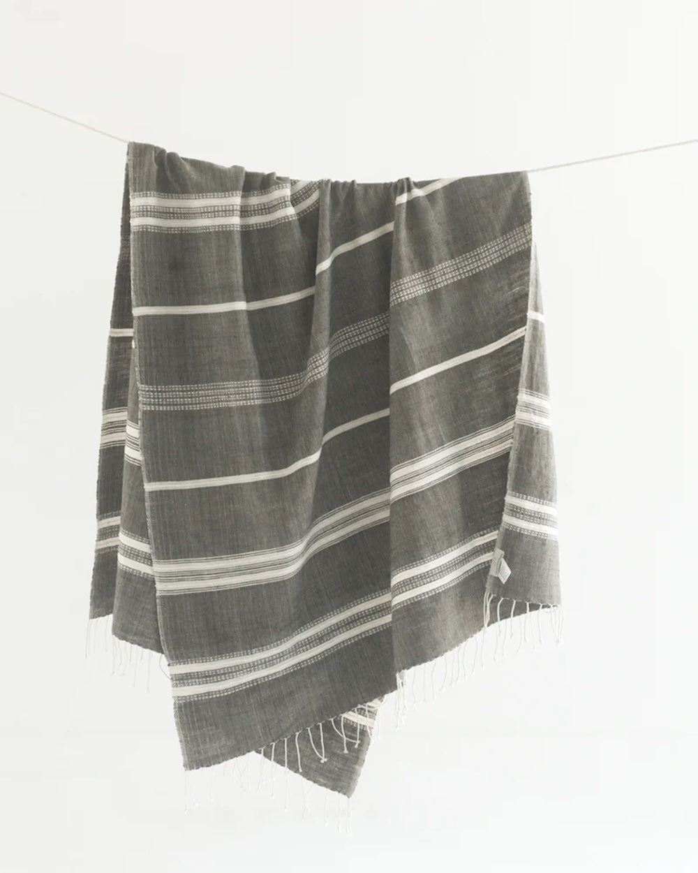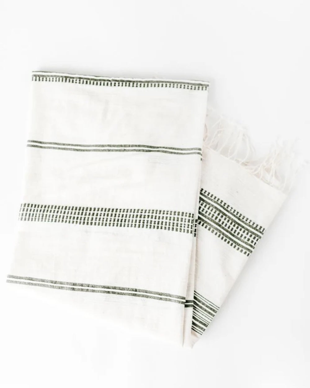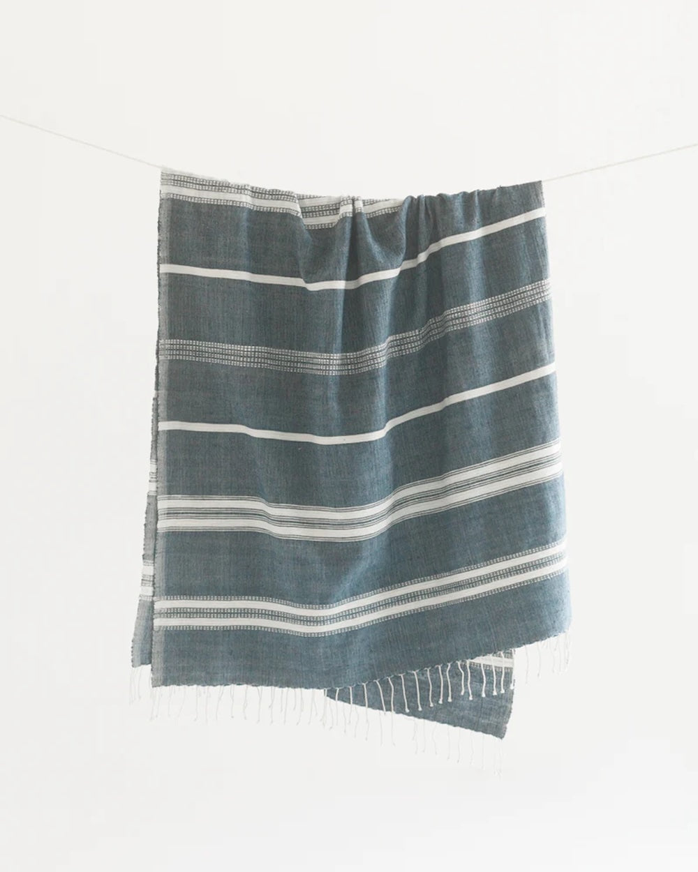 A consistent best-seller, our Aden collection is classic yet always on trend and available in 8 color ways. These versatile hand-woven pieces can be used as bath towels, lightweight shawls and accent throws. Each is hand-woven in Ethiopia using time-honored weaving traditions and AZO-free dyes. Hand-spun Ethiopian cotton adds a uniquely rich texture that will continue to soften and become more absorbent with each wash and dry. Add a luxurious touch to your bathroom with our fair trade certified bath towels!
