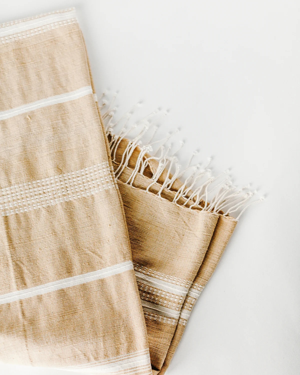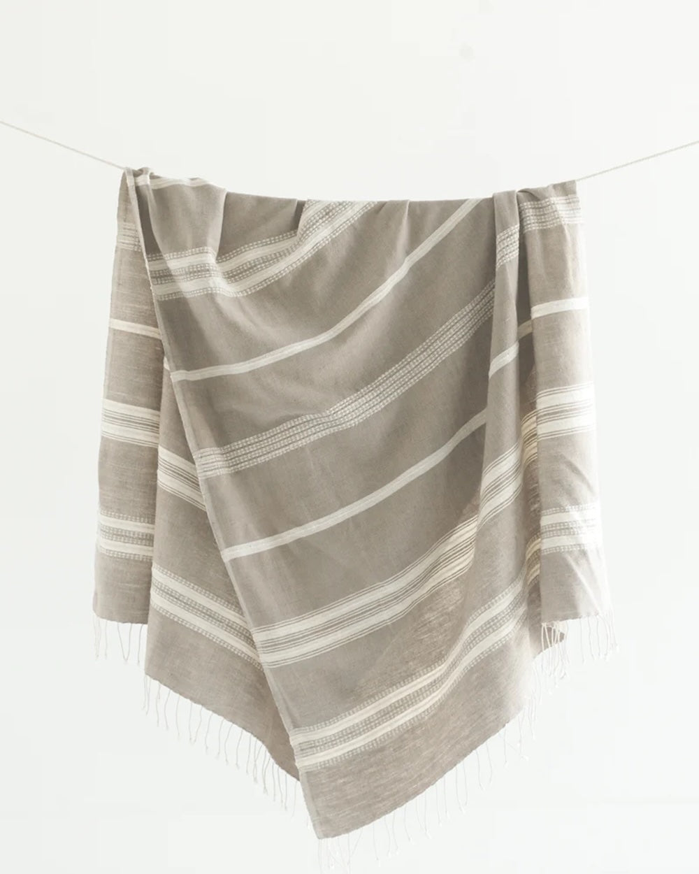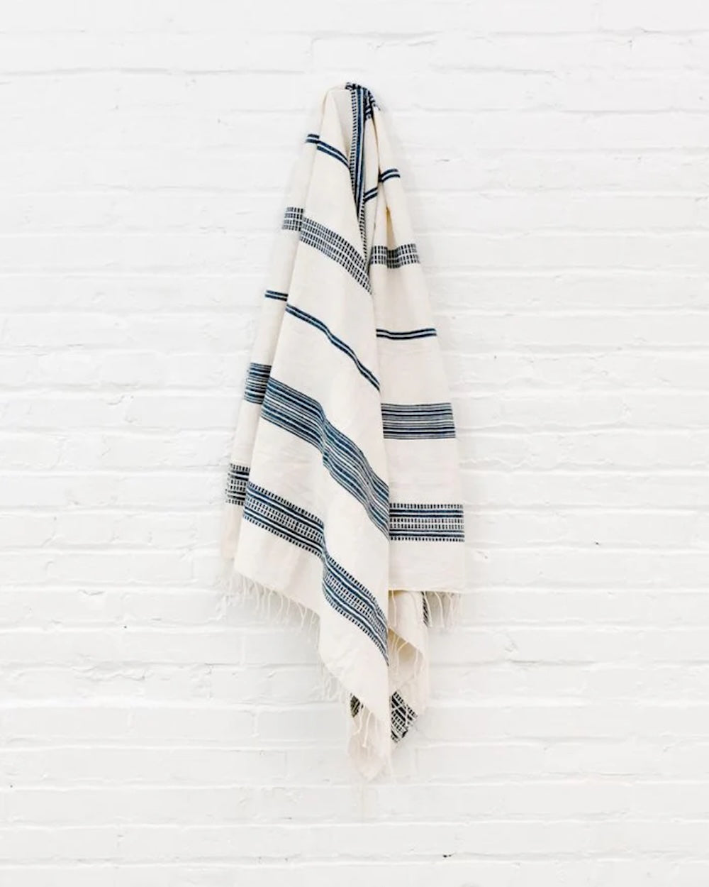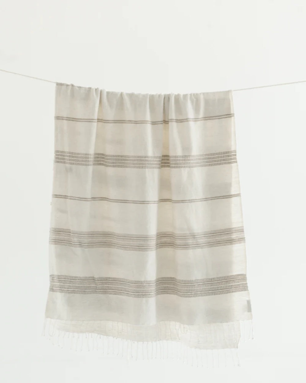 A consistent best-seller, our Aden collection is classic yet always on trend and available in 8 color ways. These versatile hand-woven pieces can be used as bath towels, lightweight shawls and accent throws. Each is hand-woven in Ethiopia using time-honored weaving traditions and AZO-free dyes. Hand-spun Ethiopian cotton adds a uniquely rich texture that will continue to soften and become more absorbent with each wash and dry. Add a luxurious touch to your bathroom with our fair trade certified bath towels!