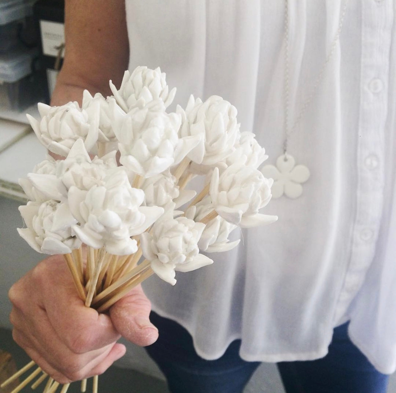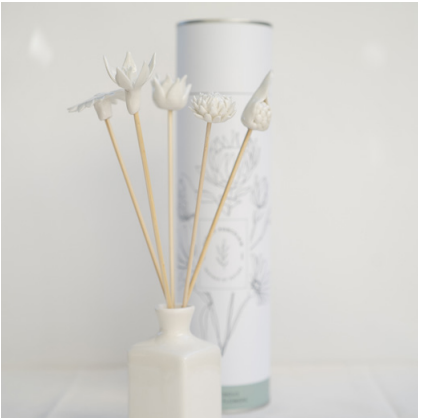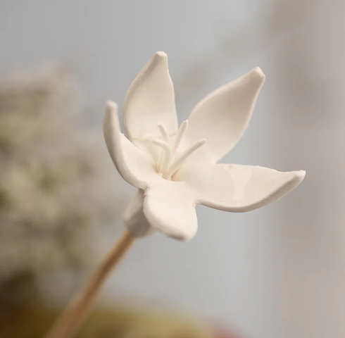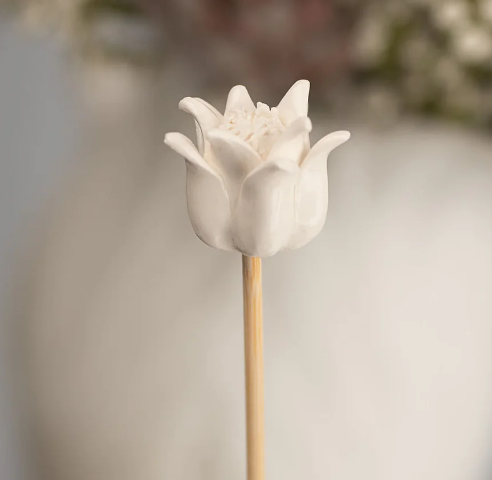 Enhance your diffuser with the elegance of our African Flower Diffuser Sticks. Each stick features hand-sculpted porcelain flowers mounted on bamboo, infusing your space with delicate beauty. Choose from a variety of blooms, including King Protea, Blushing Bride, Clivia, Namaqua, Agapanthus, Table Mountain Aster, and Arum Lily. Elevate your aromatherapy moments with these exquisite and reusable diffuser sticks, available individually.