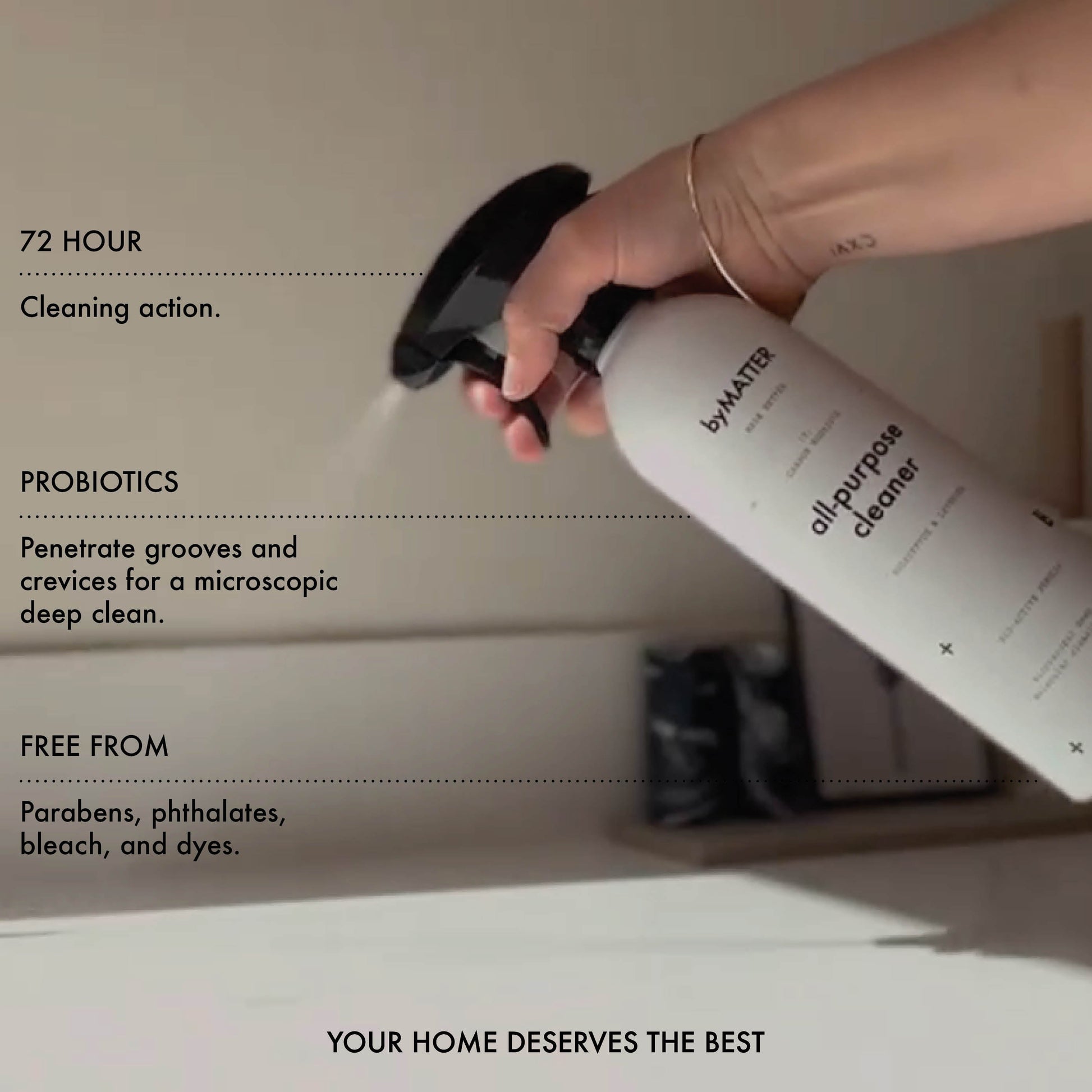 All-Purpose Cleaner bio-engineered to deliver a multi-layered cleaning action: + Delivers a microscopic deep clean that lasts for up to 3 days + Effective against harmful bacteria (including certain superbugs) + Kind to little ones, no harsh chemicals