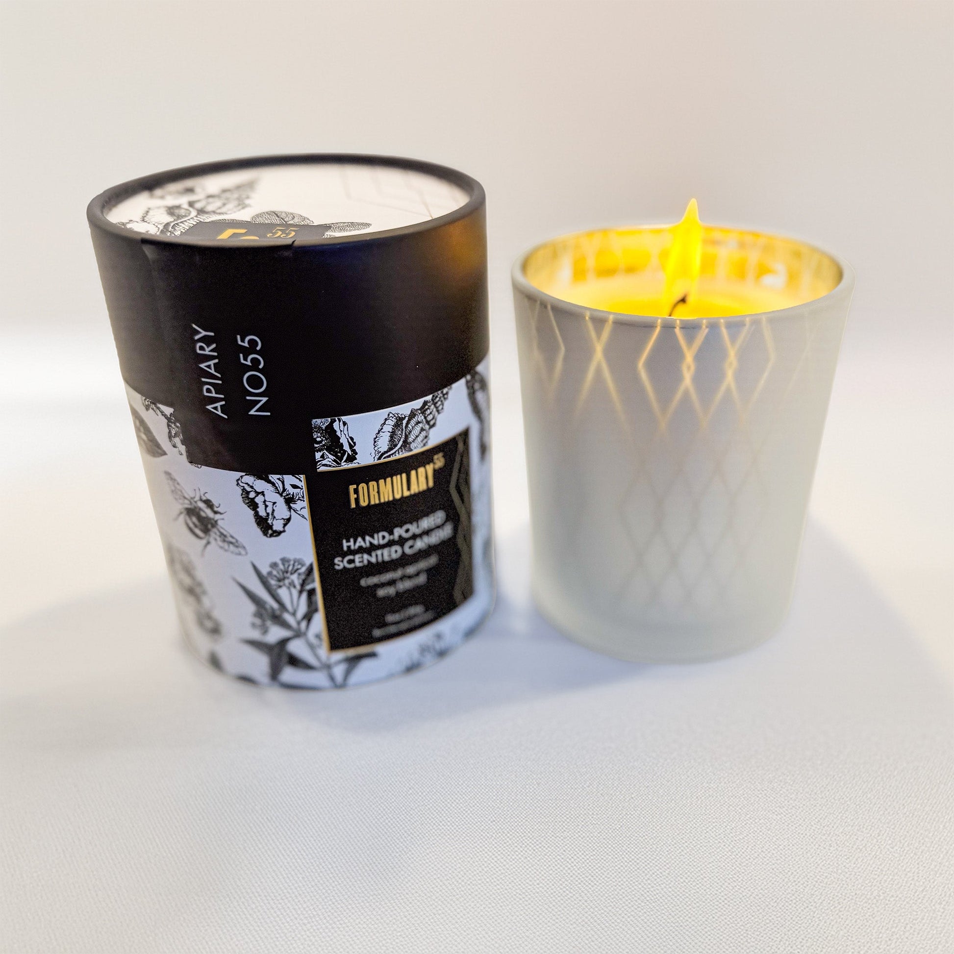 Extend your favorite fragrance into your home with our serenely elegant Glow Candle. Housed in white-frosted glass and hand-poured to perfection, this candle is designed to be a visual and olfactory centerpiece. Our signature exclusive diamond lines are etched in gold electroplate, allowing the flame to cast a beautiful, warming glow that shimmers through the vessel. Elegantly presented in a gorgeous tube-shaped gift box, this candle makes a thoughtful present for loved ones or a luxurious treat for your own sanctuary. Benefits of the Glow Candle Collection: Luminous Design: Gold electroplated etching creates a stunning "glow" effect that shimmers when lit. Gift-Ready Packaging: Comes in a sturdy, reusable tube-shaped gift box. Sustainable Luxury: Reuse the gift box for storage and the empty glass vessel with a tealight to continue enjoying the glow. Clean Burn: Features all-natural cotton wicks for a consistent flame. SCENT PROFILE: Sugared Plum & Fig is a blend of fresh tart fig and delicately sweet plums. SIZE/DESCRIPTION: This 11oz candle is crafted with our signature custom blend of coconut, apricot, and soy wax. This unique formulation ensures a creamy, smooth finish and an exceptional scent throw. The vessel is a heavy-bottomed, white-frosted glass featuring gold diamond etching, measuring 3.25" x 4", designed to elevate any room's decor. DETAILS: To ensure the best experience, trim the cotton wick to 1/4 inch before every burn. Burn Time: Up to 60 hours of illumination. Afterlife: Once the candle is finished, clean out the wax to reuse the beautiful gold-etched vessel as a holder for brushes, pens, or a tealight. INGREDIENTS & SPECS: We believe in clean luxury. This candle is poured in the USA using a coconut apricot soy wax blend, all-natural cotton wicks, and essential oils mixed with phthalate-free clean fragrance.