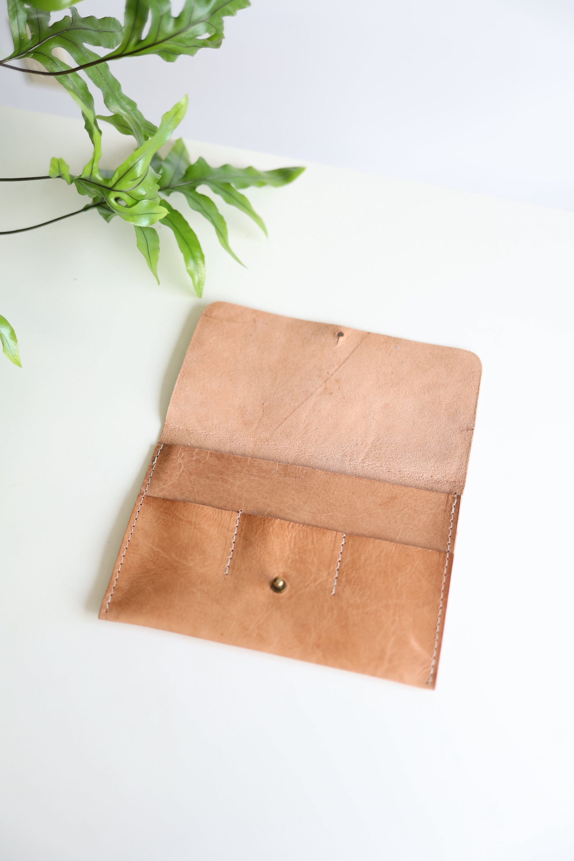 The Atlas Mountains define the Moroccan landscape, separating the Mediterranean coast from the Sahara Desert. Our Atlas Collection is inspired by these rugged ranges with their simple form built from thick raw cowhide for durability. Features brass hardware, 3 card slots and a compartment for cash Measures approximately 8 inches wide, 5 inches tall. Each item is handmade and measurements may vary slightly. As leather is a natural material, color tone and texture may vary slightly from item to item. Each item is handmade and measurements may vary slightly. As leather is a natural material, color tone and texture may vary slightly from item to item. Your natural leather item will develop its own unique patina and darken slightly over time. _______________________ Jubilee Trading Co. is a non-profit on mission to create life-transforming employment in our local community + beyond. We work directly with global artisans to make our goods, as well as provide support for other artisan brands through our warehouse and local team. Every product purchased starts a ripple effect of positive impact. With your purchase, you become a part of this story!
