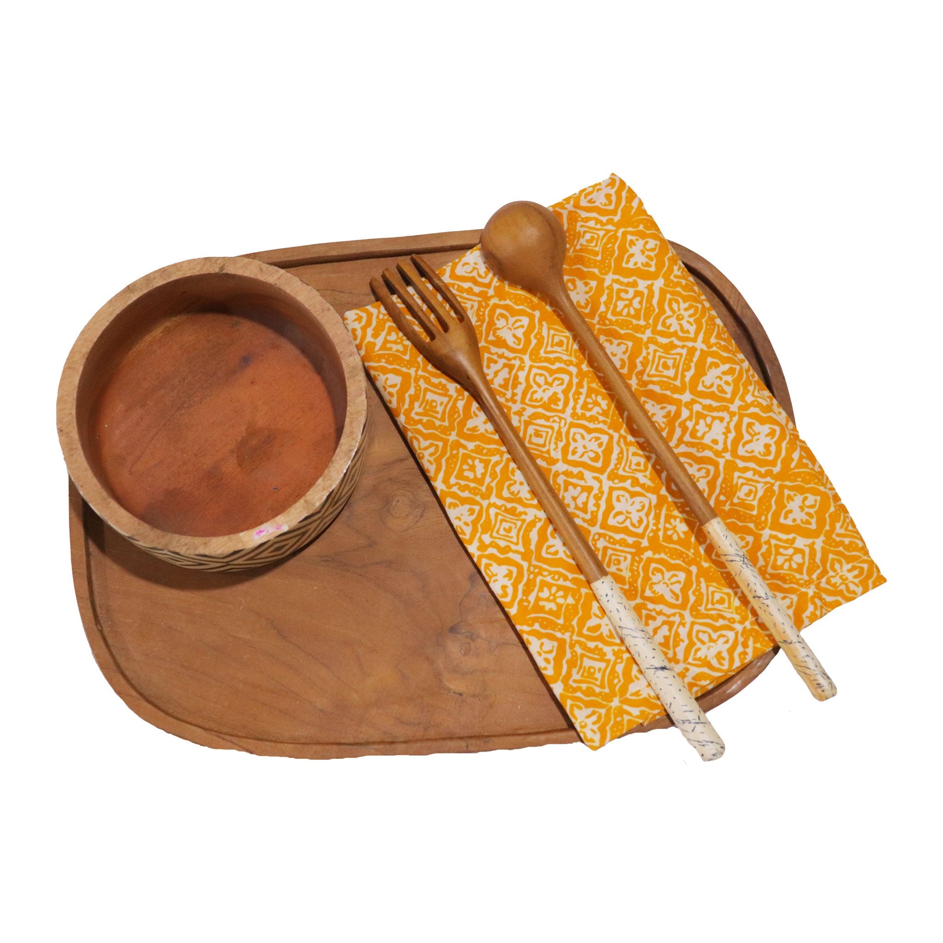• Add artisan charm to any meal with unique, hand-dyed batik patterns in warm mustard yellow and brown.