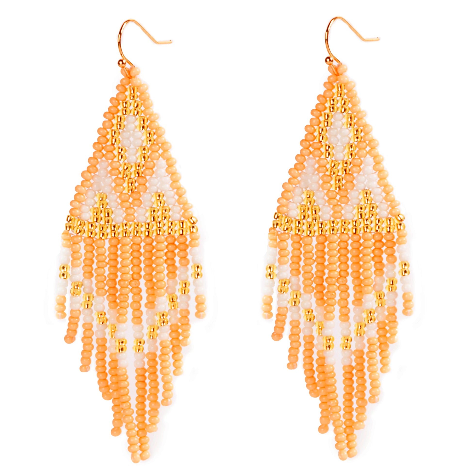 Hand woven by indigenous Embera Chami artisans, these seed bead earrings represent a piece of Colombian culture, fusing modern designs with ancient tribal craftsmanship. The Embera Chami tribe are known for their intricate and colorful bead work and these earrings do not disappoint. Each pair features beautiful bead detailing in a unique FOSTERIE exclusive small batch pattern. Materials: Seed beads Size: Approximately 3.5 inches from top of hook, 1 inches wide