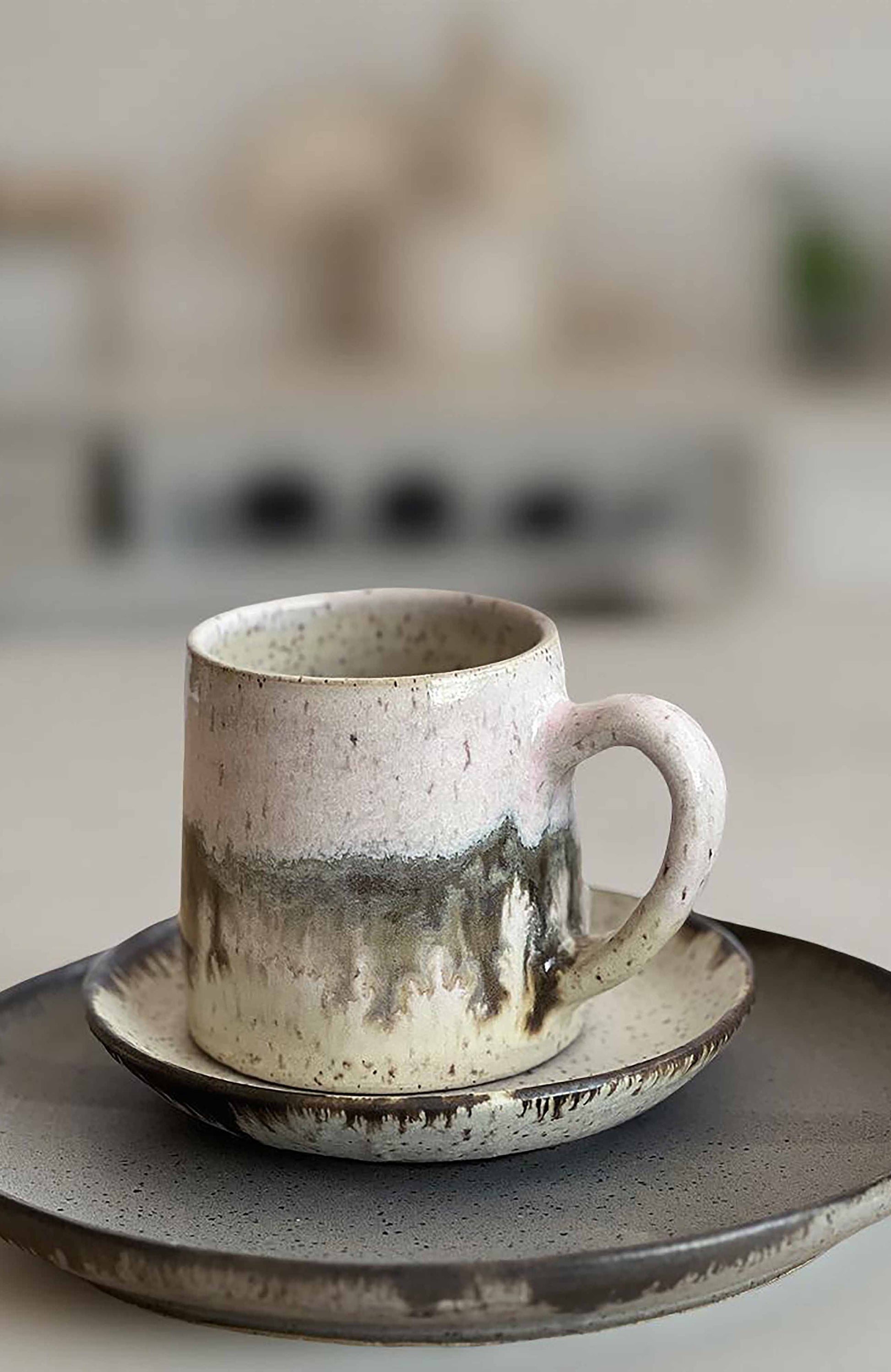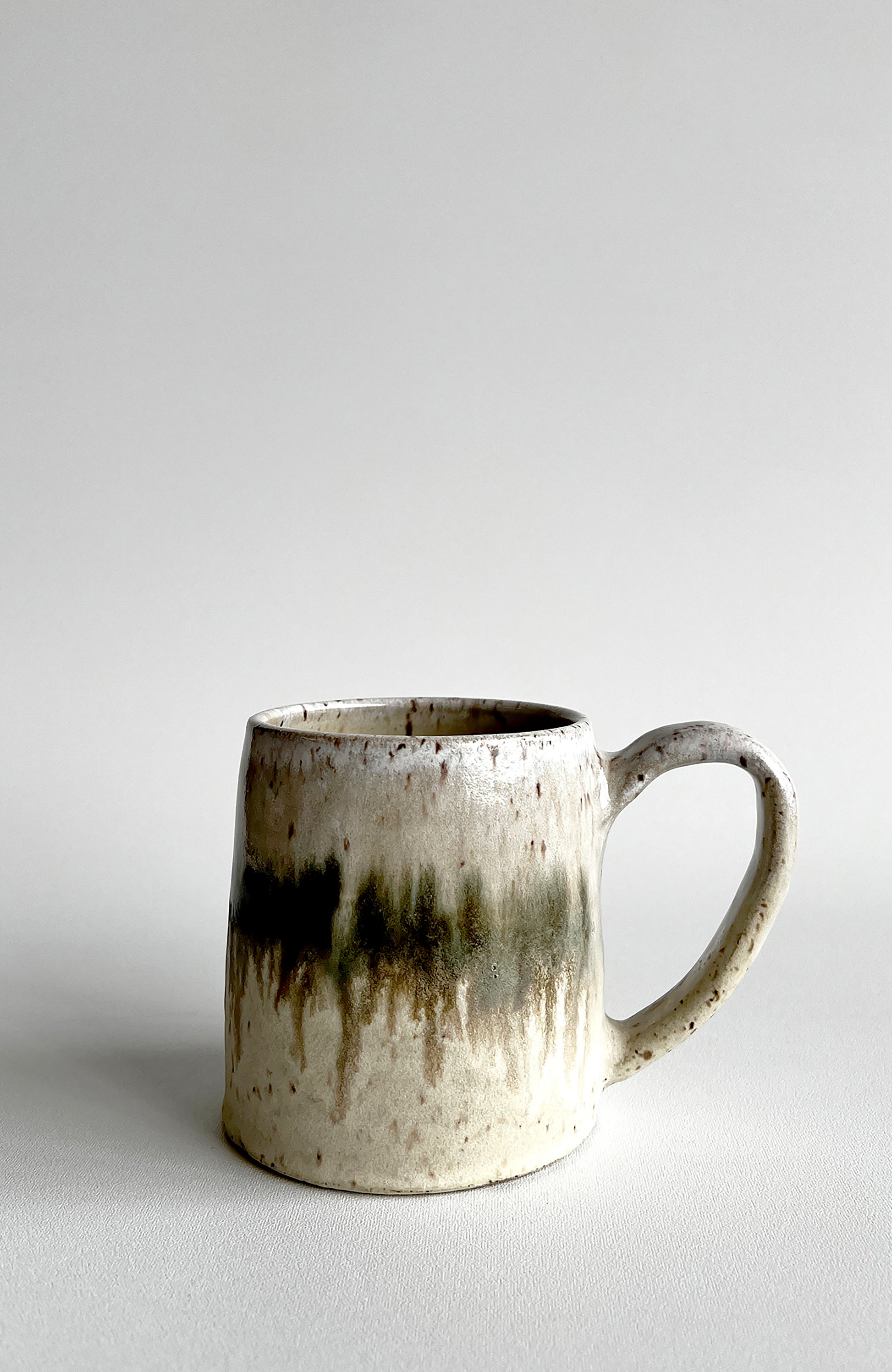 The Borealis Mug in Dawn is a unique artisanal creation, showcasing a breathtaking glaze reminiscent of the Aurora Borealis. Crafted from brown stoneware clay with flecks, it boasts both visual appeal and functionality. Its delicate white and pink interior, adorned with beige, bronze, and white hues, makes it a captivating addition to any table setting. The beauty of this combo is that no two are ever the same. Some of the mugs have more of a stripe of bronze while in other firings it runs. I have no control over this and please note this is part of the charm of handmade. These are final sale. See the photos for a better understanding of these variations. Approximate dimensions: 4 inches in height x 4 inches in width. Holds 16 fluid ounces. Safe for use in both microwaves and dishwashers. Each mug is sold separately. *All of my products are made by hand and will vary. Each glaze firing varies as well. Please keep this and my refund policy in mind when you place your order. Thank you.
