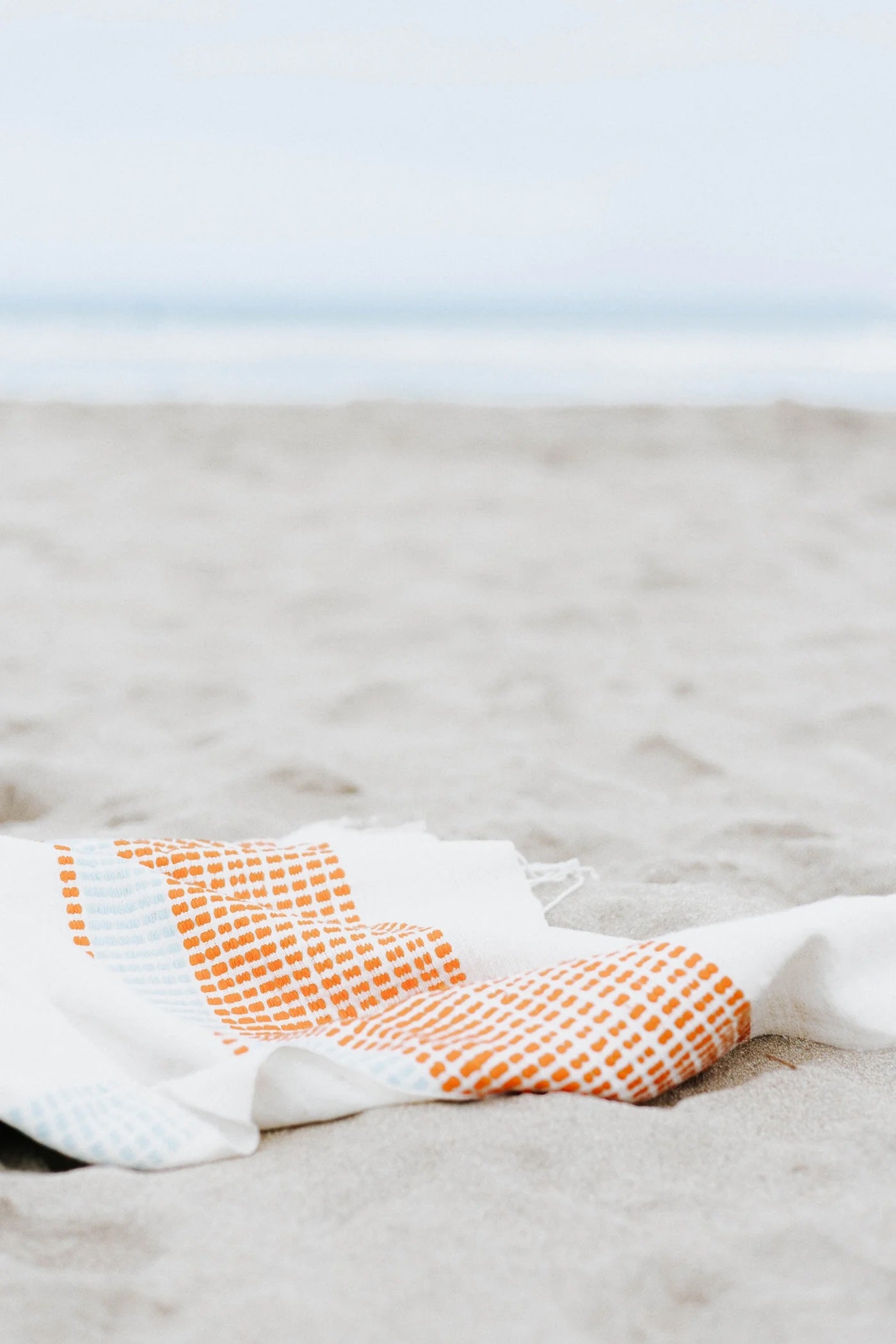 The Camden Collection pairs vibrant azure blue with bold dotted blocks of complementing colors. These versatile artisan-made textiles can be used as bath towels, lightweight shawls and accent throw blankets. Each is hand-woven in Ethiopia using time-honored weaving traditions and AZO-free dyes. Hand-spun Ethiopian cotton adds a uniquely rich texture that will continue to soften and become more absorbent with each wash/dry. Yes, it's machine washable!