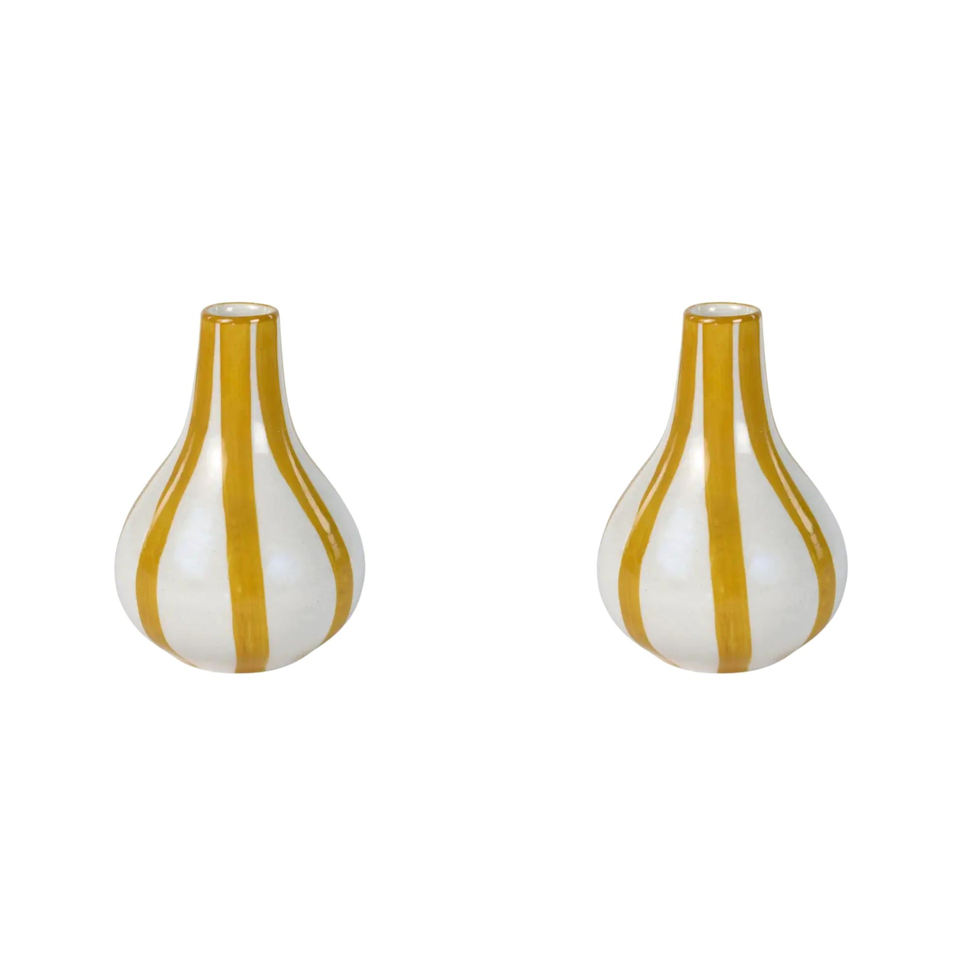 Ceramic Stripe bud vase, Yellow- 3.5 x 3.5 x 4.75 Inches ( Set of 2 )