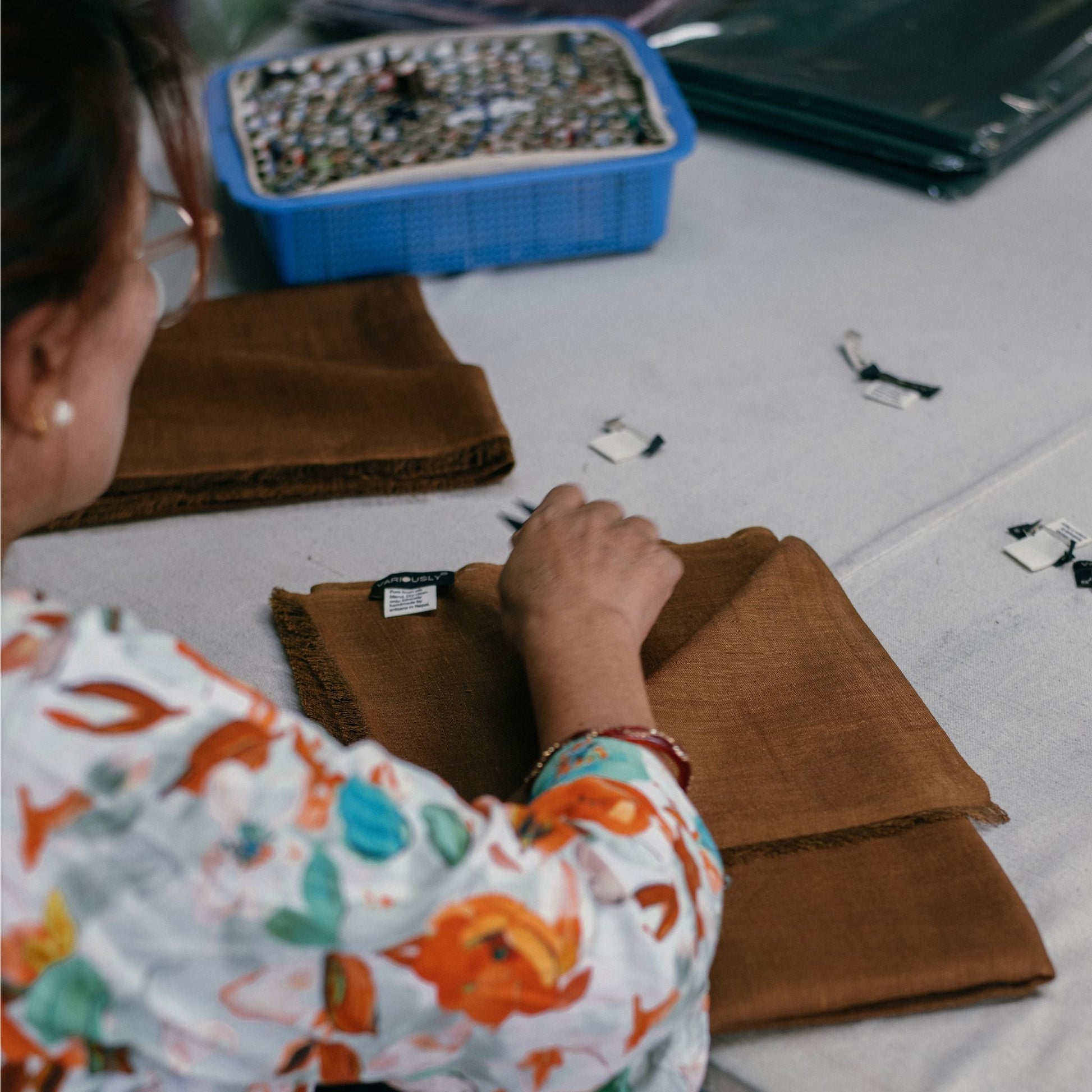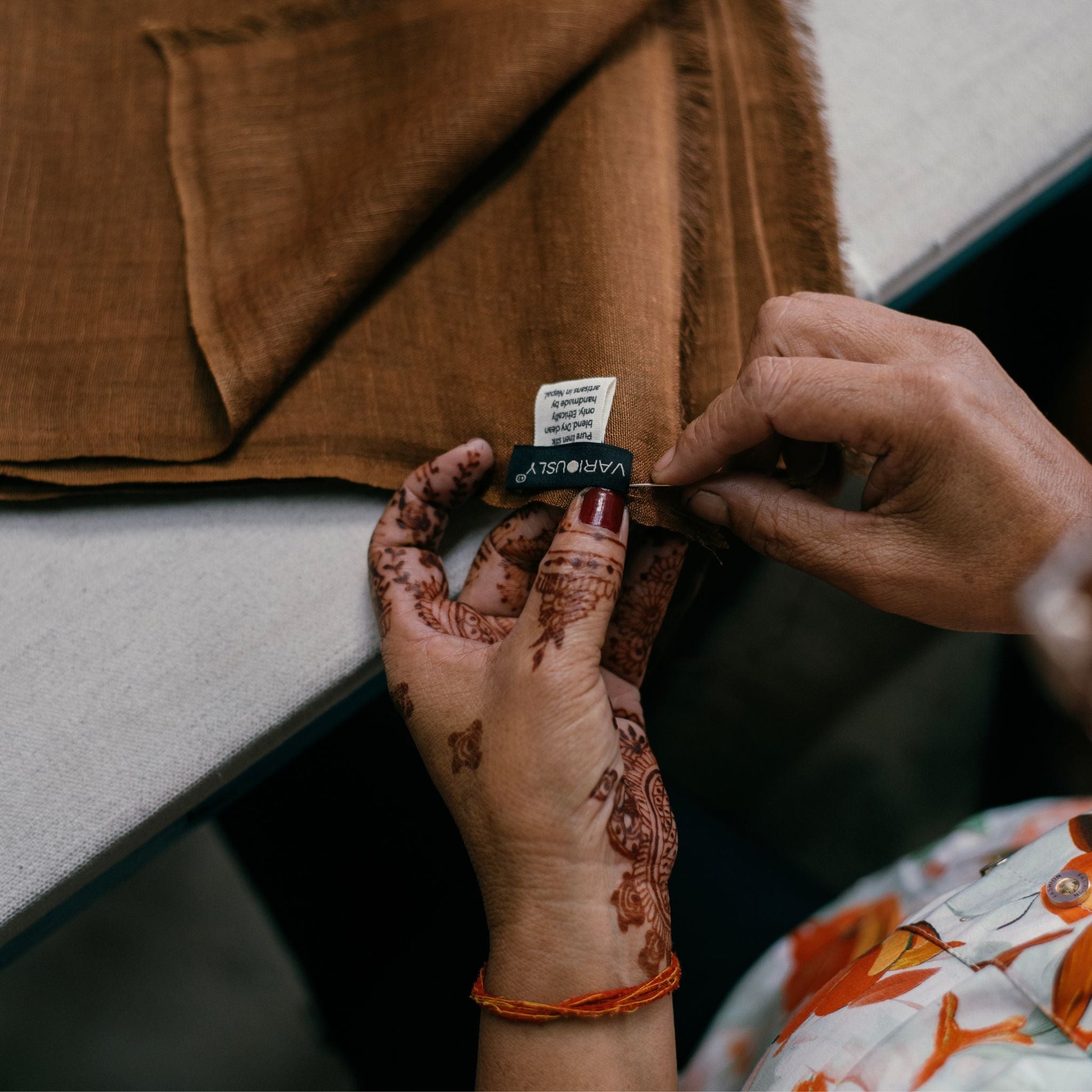 Coco linen silk blend scarf is an elegant piece that is easy to blend in with most outfits. Classic gift or personal purchase for all round the year, this hand woven scarf also supports artisans directly. Due to the raw texture of plant based linen yarn used , it has a beautiful translucent appeal. Each piece is dipped into earth friendly dyes by hand , making this soft linen scarf a timeless unisex piece. Material: Pure linen silk blend Size: 70 X 200 cm Color: Coco brown. Artisan Base: Ethically hand woven by artisans in Nepal Wash care: Gently hand wash with cold water, hang dry or delicately dry clean only. What Makes Your Purchase Sustainable ? Eco Swiss Dyes Support employment of women artisans. 100% handmade manufacturing process by artisans. Use only 100% natural + biodegradable responsibly sourced materials. Small batch production ensures higher quality & less wastage.