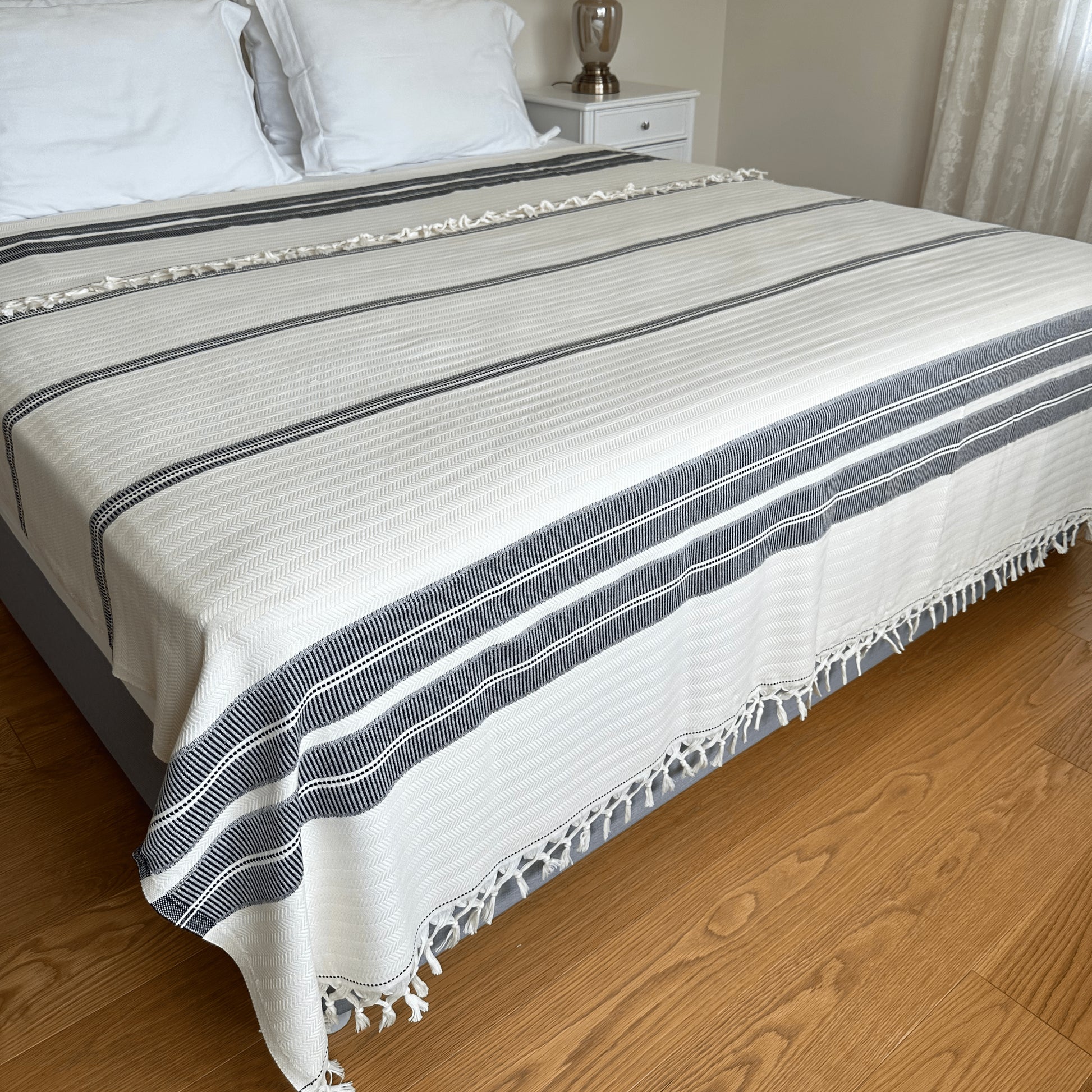 Our Costa Turkish Blanket is woven from the finest long-staple Turkish cotton. So cozy and versatile, the Costa Blanket is the perfect accent for the bedroom in your home. Loomed from yarn died, %100 long-staple Premium Turkish Cotton Exceptionally soft and cozy Adds a touch of sophistication and warmth to your space Free of harmful chemicals and dies Suitable for King or Queen size beds Made in Turkey ______________________________________________ Materials: 100% Premium Turkish Cotton Size: 78”x94" Weight: 1300gr/46oz Care: Machine wash cold or up to 30℃ in gentle cycle. Avoid fabric softeners, dryer sheets and bleach. Air Dry or Tumble Dry low heat in gentle cycle. We recommend Air Dry as Turkish towels air dry quickly, so you may hang them to dry. Handcrafted by Olive and Linen ______________________________________________