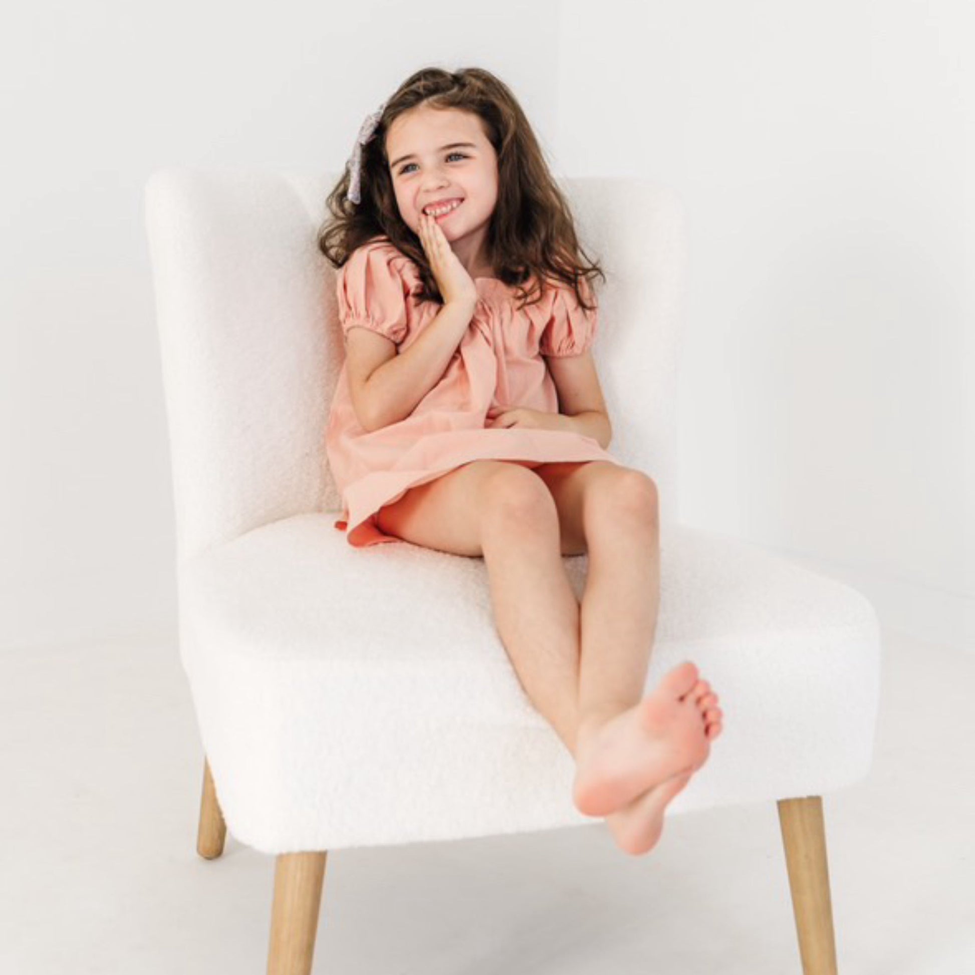 Introducing our charming Square Neckline Dress, a delightful addition to any young girl's wardrobe. Made from 100% organic cotton, this lightweight dress offers both comfort and sustainability. It features short puff sleeves with elasticized cuffs for an effortless fit and unrestricted movement. The playful billowy style of this weekend dress adds a touch of whimsy to every twirl. To keep it looking its best, simply machine wash in cold water with similar colors, tumble dry on low, and iron on low heat if necessary.