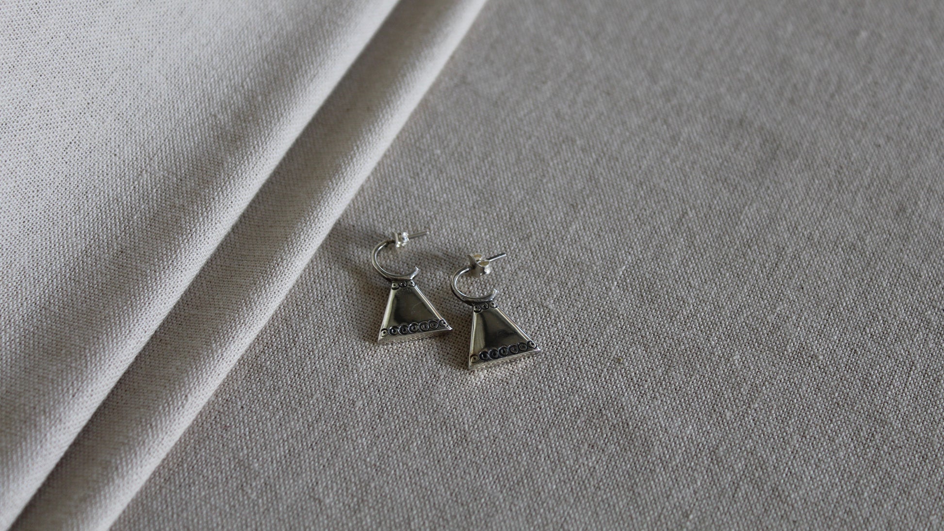 These earrings were originally spotted in Africa Adorned, photographed by Angela Fisher. Originally carved from ivory and decorated with small circles chiseled with tools in the late 19th century. Reinterpreted in brass and gold plated.