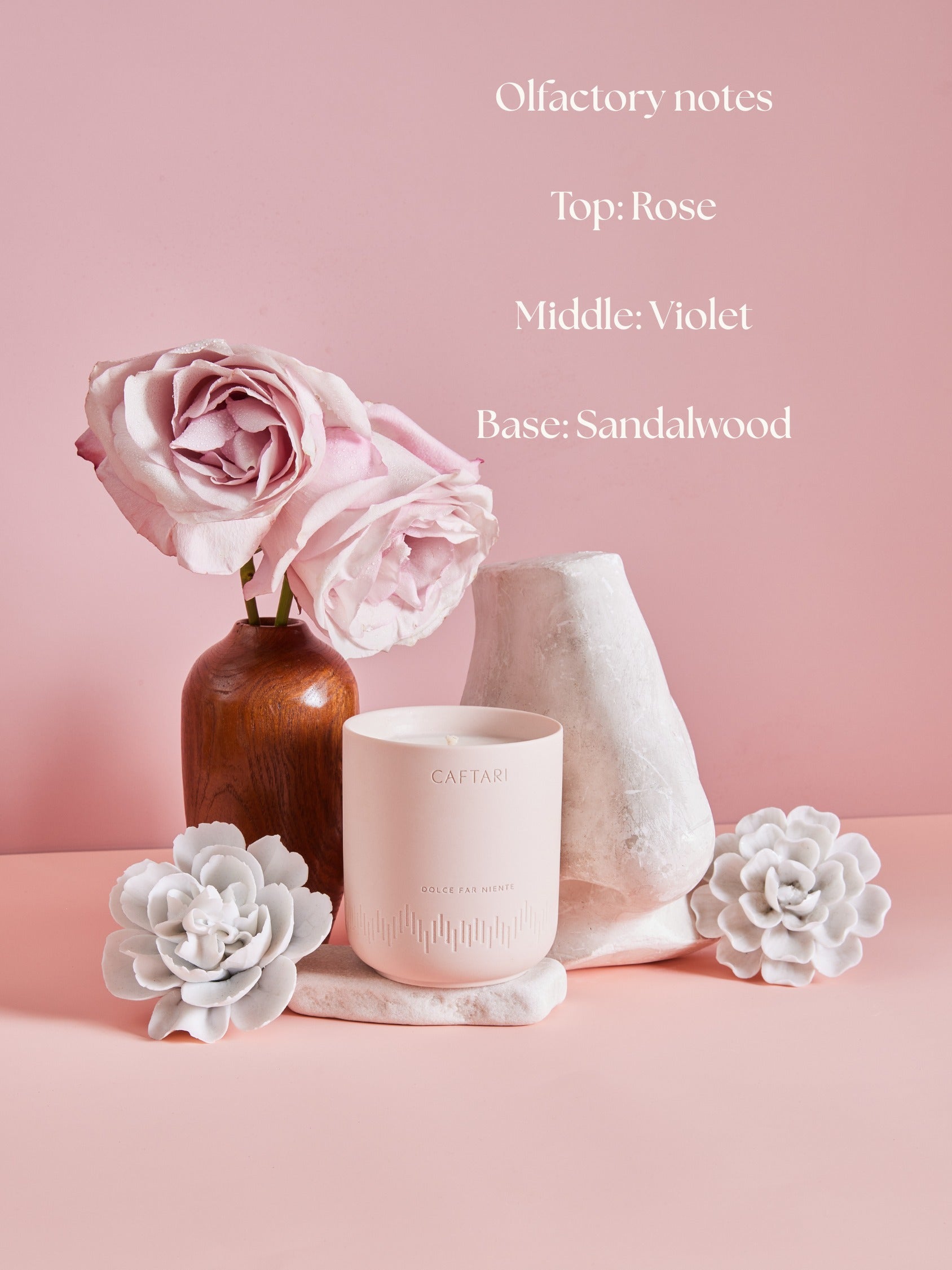 Indulge in the "sweetness of doing nothing"Experience the Italian adage at home. Our proprietary fragrance blend featuring rose essential oil enhances the release of serotonin, a neurotransmitter known to promote happiness. Serotonin modulates Alpha brainwaves and is usually present when we're daydreaming or practicing mindfulness. With its romantic and floral profile, Dolce Far Niente is a purposeful aroma to light while savoring the present moment.