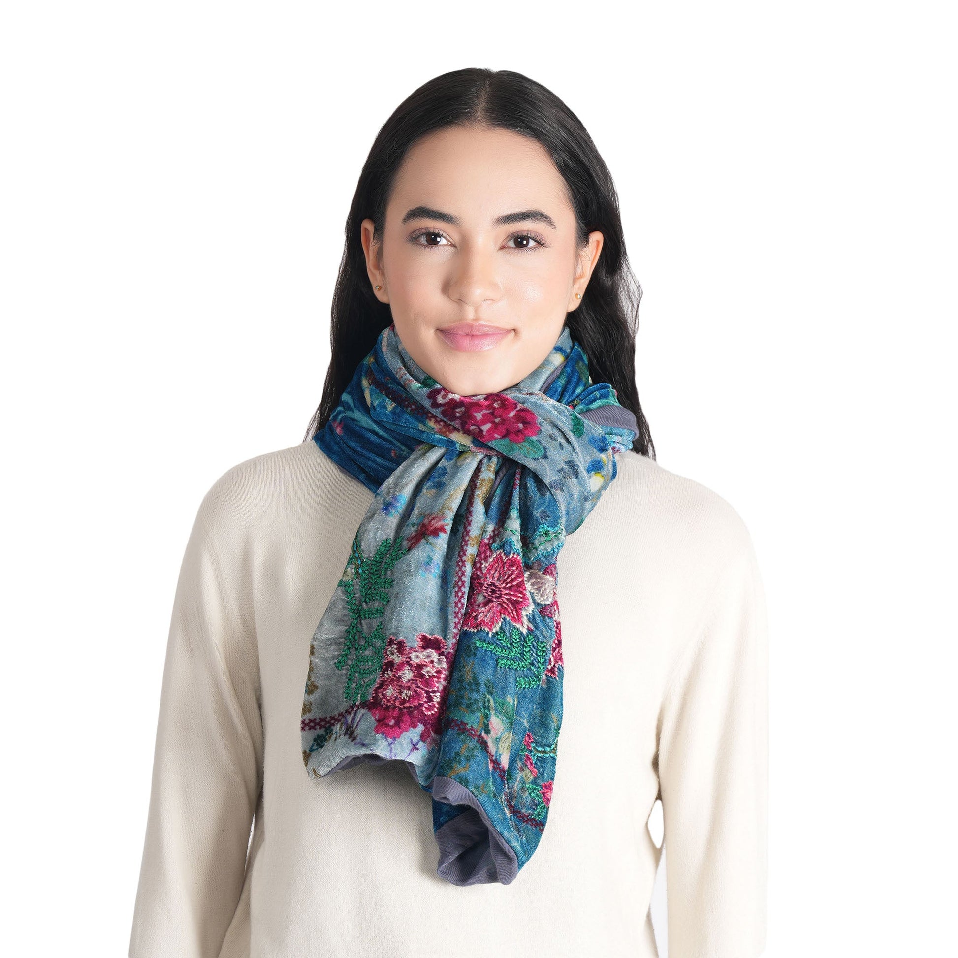Enchanted Garden Velvet Scarf – Dusty Blue