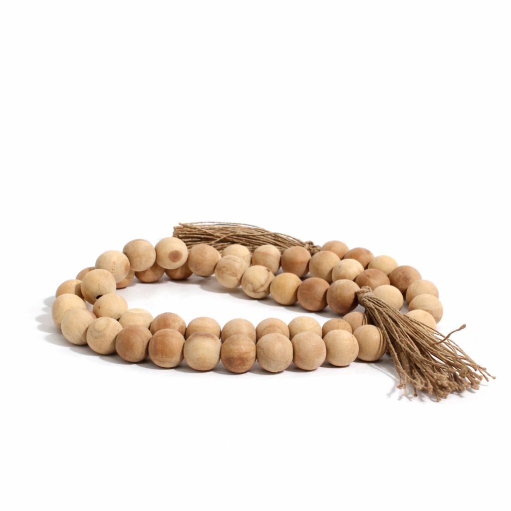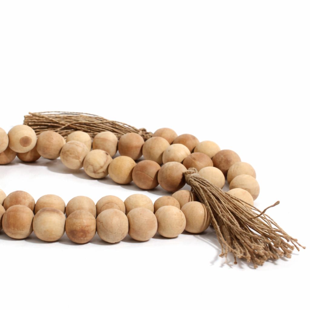 Farmhouse Wooden garlands are an emerging trend for new age homes, from modern to boho and everything in between. The garland includes 50 wooden beads and a jute tassel on each end.