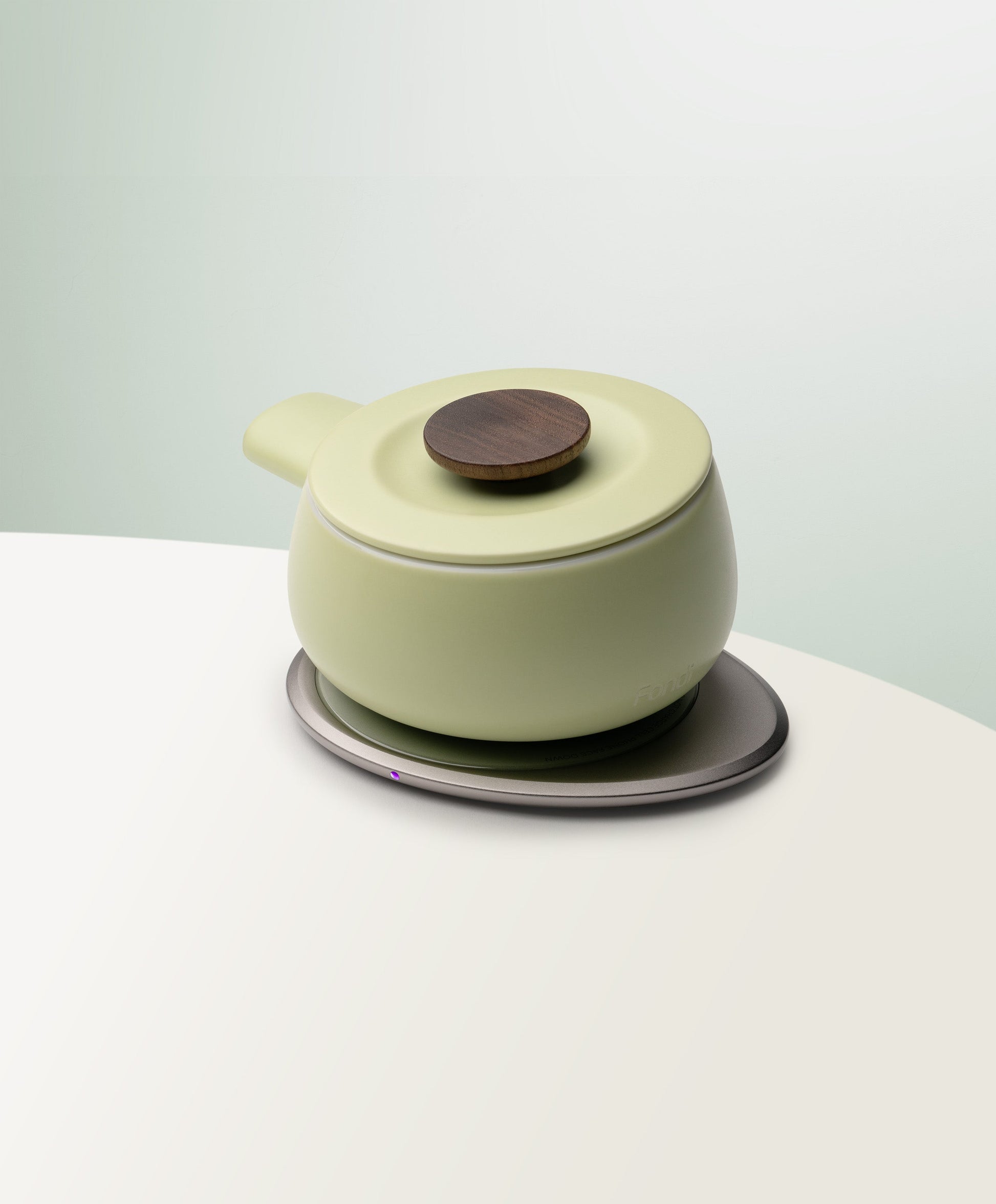 A fine ceramic self-heating fondue set designed to elevate your snacking experience. Simply place the Fondi on the OHOM Pad, add your choice of shredded cheese or chocolate, and watch as it melts into a luxurious, velvety delight. Whether you’re pairing with crisp vegetables, ripe fruits, or crunchy chips, the Fondi ensures your fondue stays melted from the first dip to the last. Fondi transforms any setting into an elegant culinary retreat, allowing you to indulge in a warm, delightful snack while working or unwinding. Combining sleek design with functional warmth, Fondi brings a taste of indulgence to your daily routine, offering a simple yet sophisticated snacking solution anytime. Specifications: Handcrafted fine ceramic Volume: 7.6 fl oz / 225 mL Fast charge cell phone & AirPods Works with other OHOM Unity products Dishwasher safe Package includes: Fondi with lid OHOM pad Power adapter USB Type C cable Free Standard Shipping in the Continental US