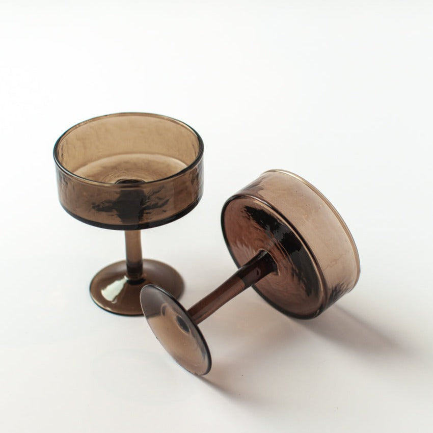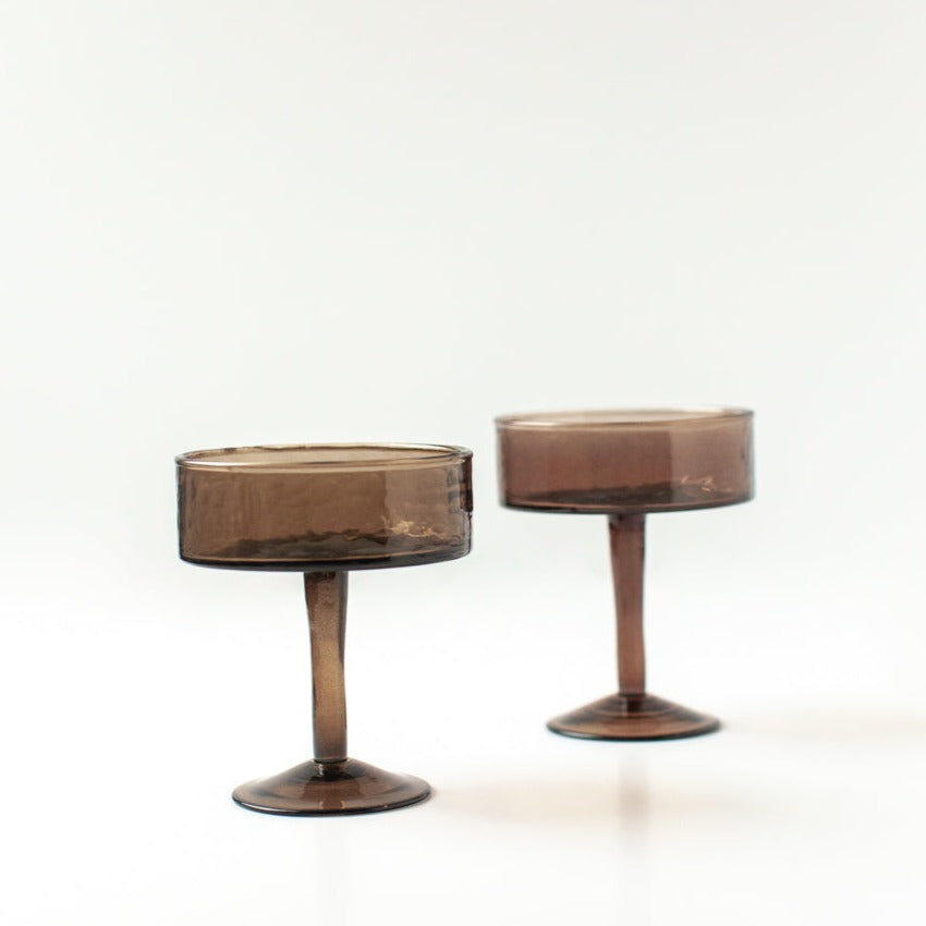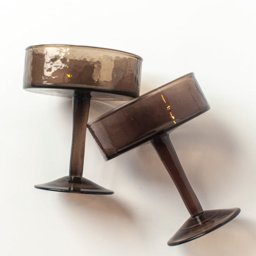Handblown Hammered Coupe Cocktail Glasses, Smoke - set of 4