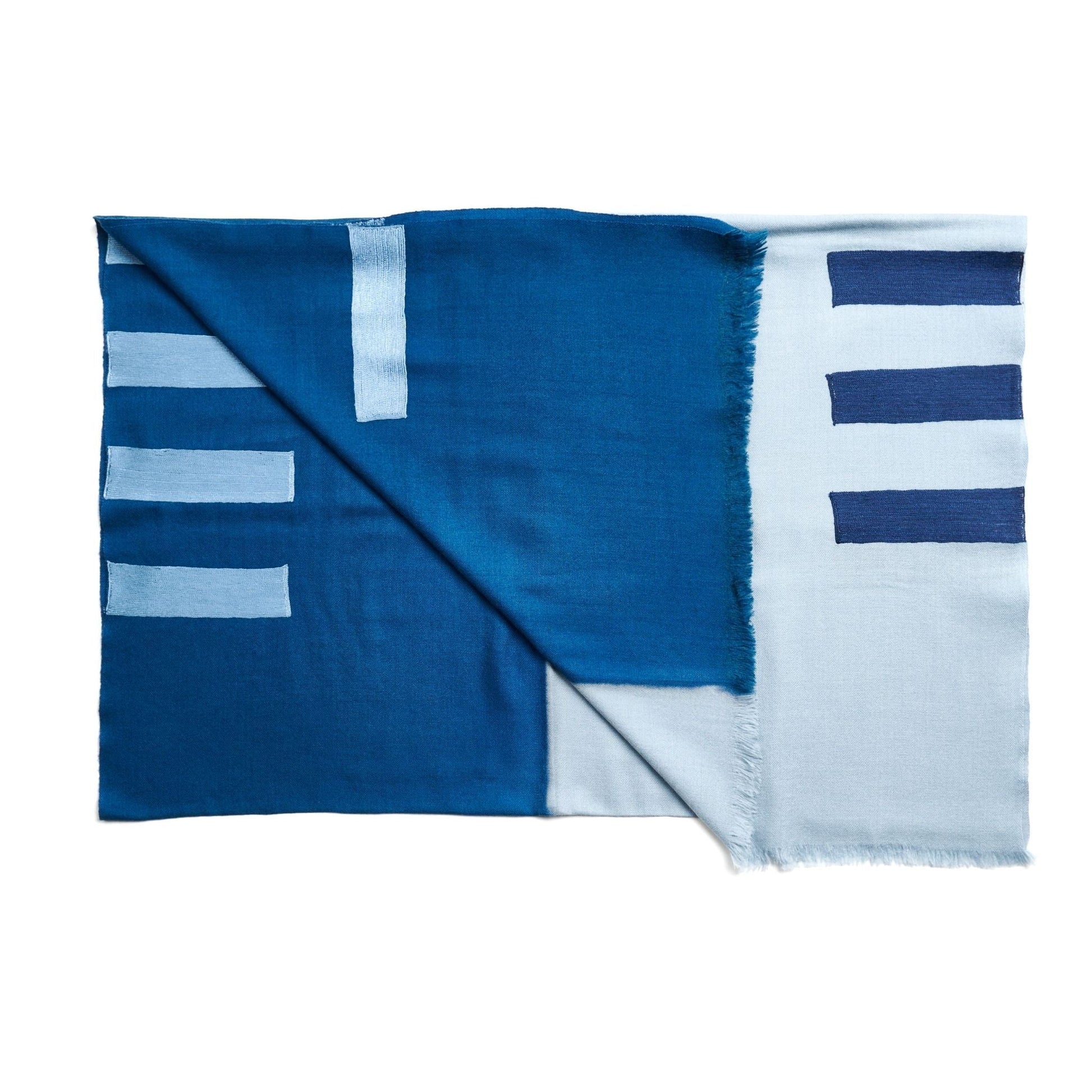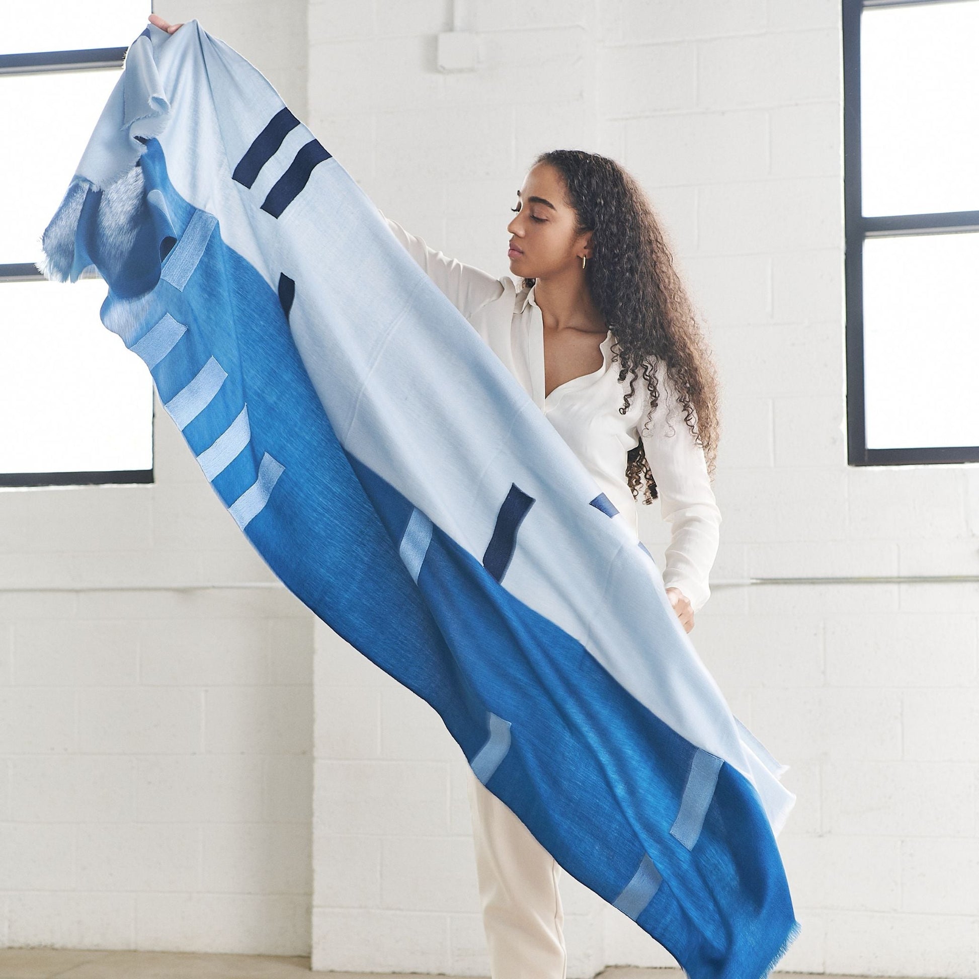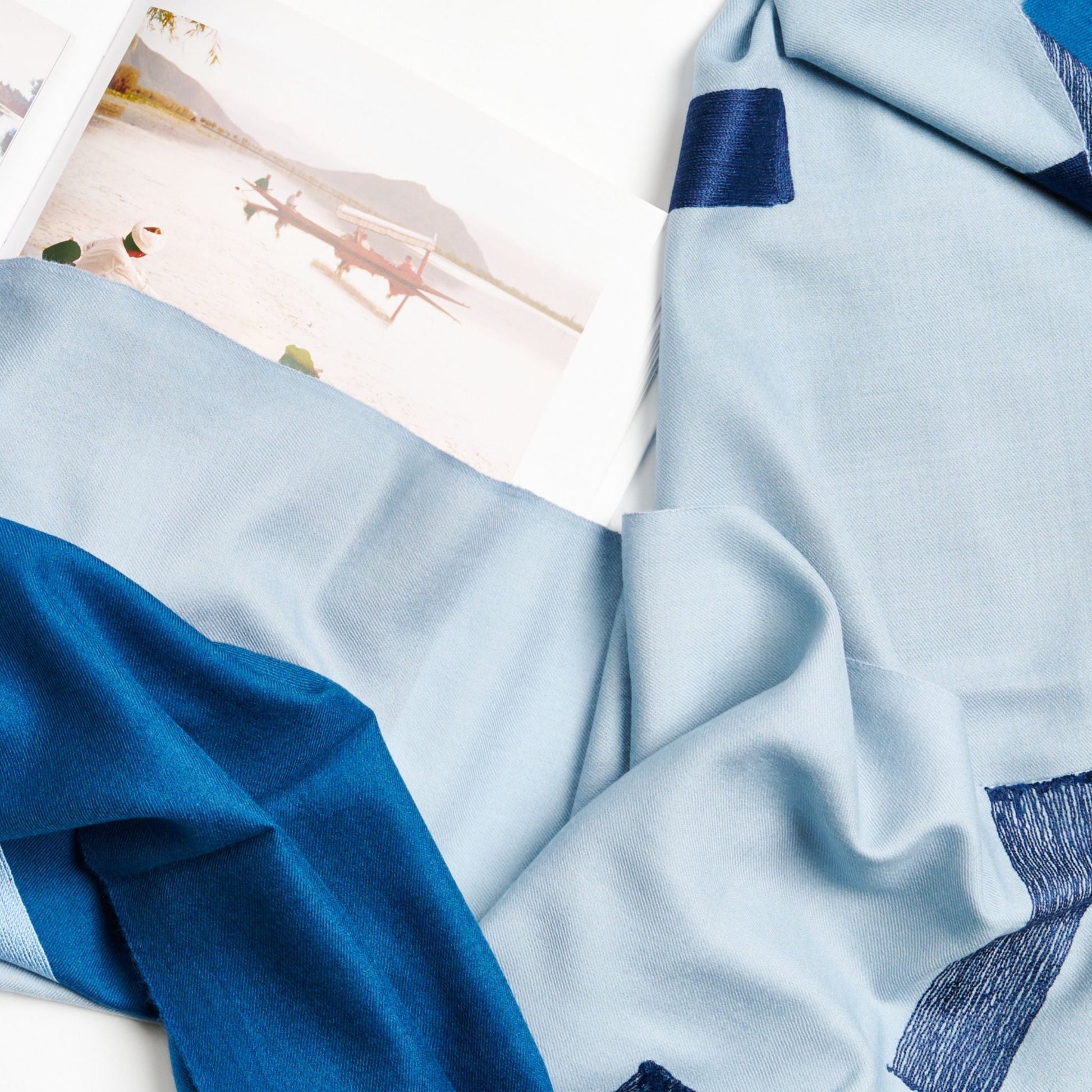 Harbor Blue Silk Merino Hand Woven Hand Embroidered Modern Artisanal Scarf