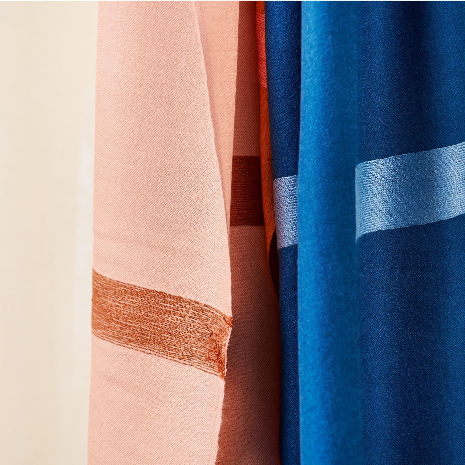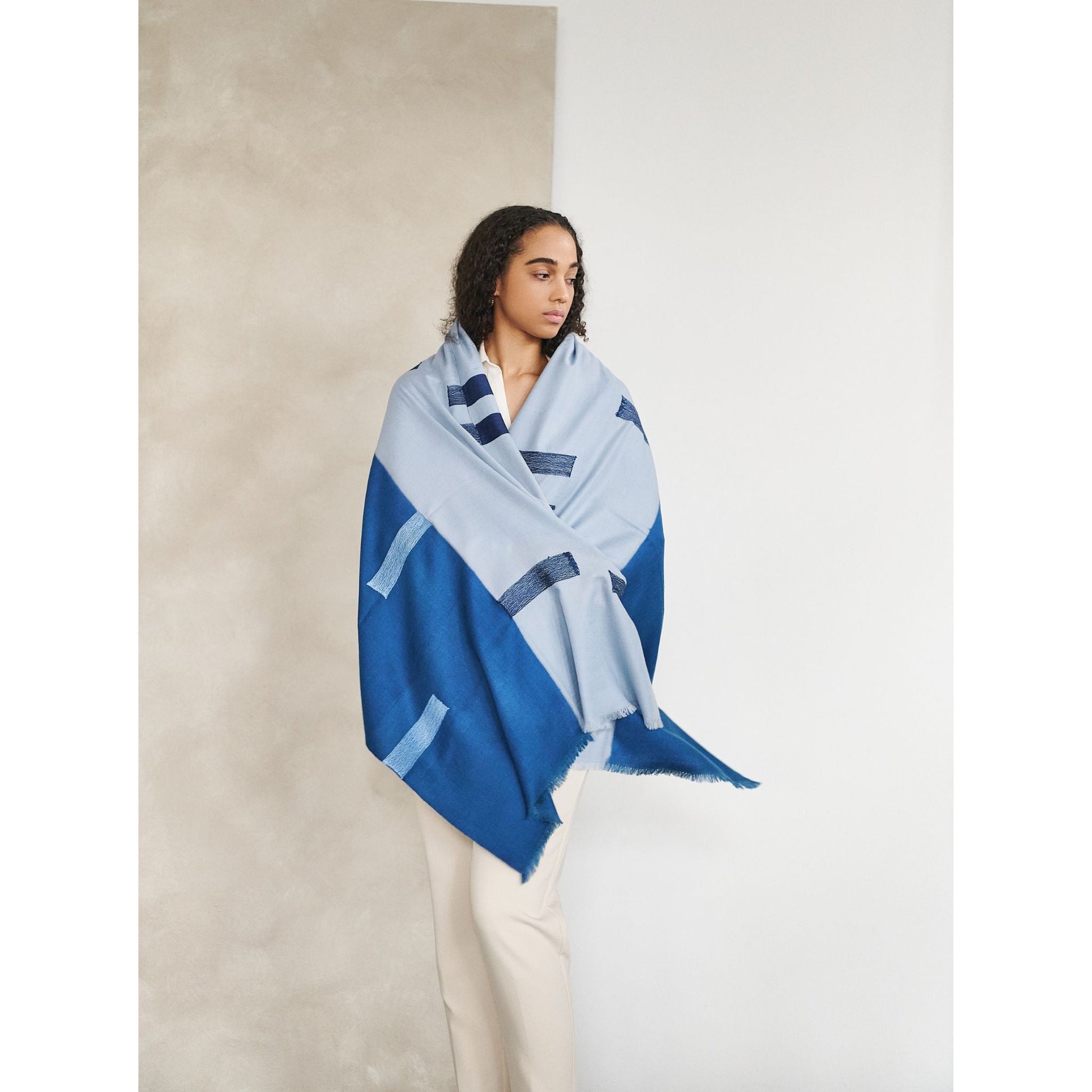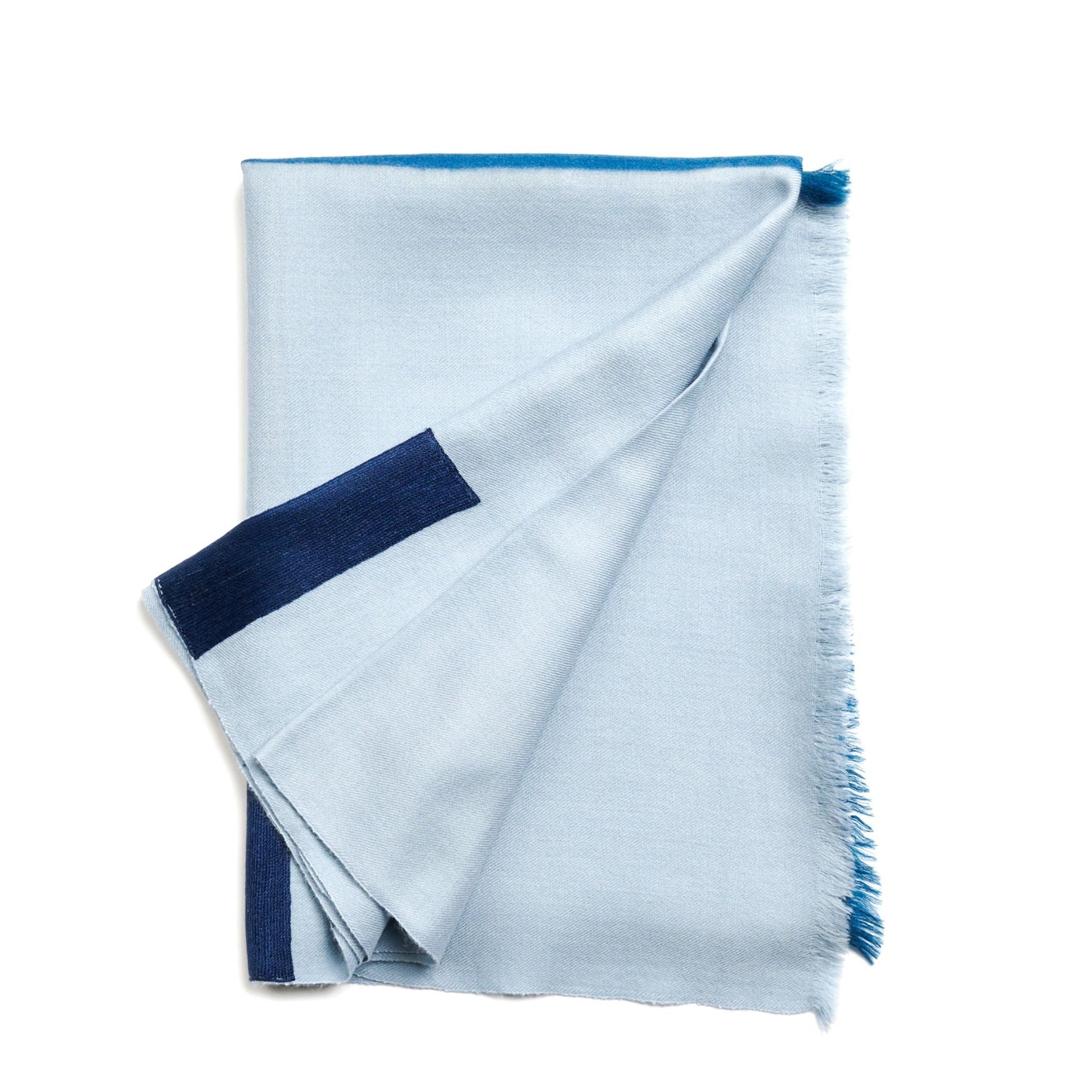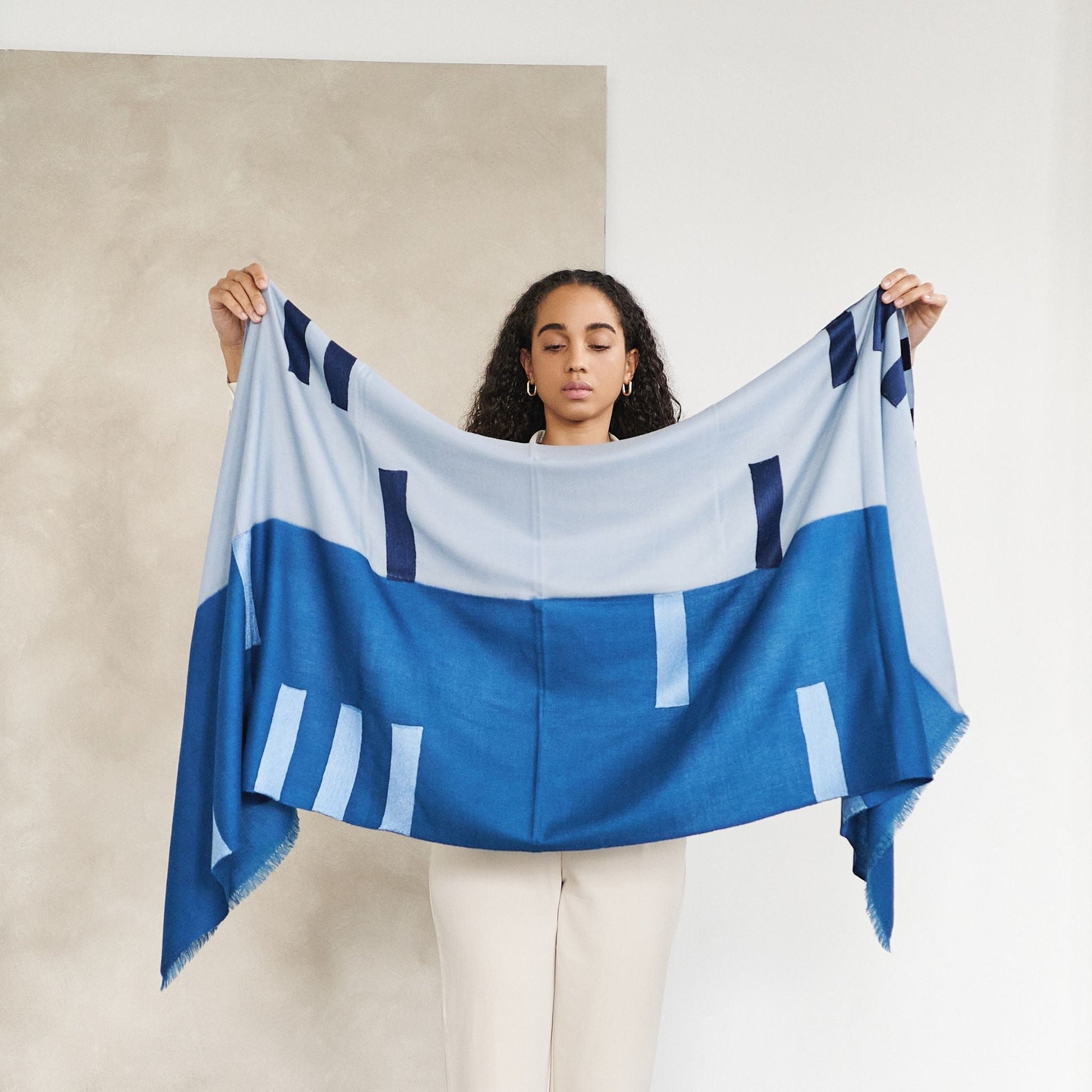Harbor Blue Silk Merino Hand Woven Hand Embroidered Modern Artisanal Scarf