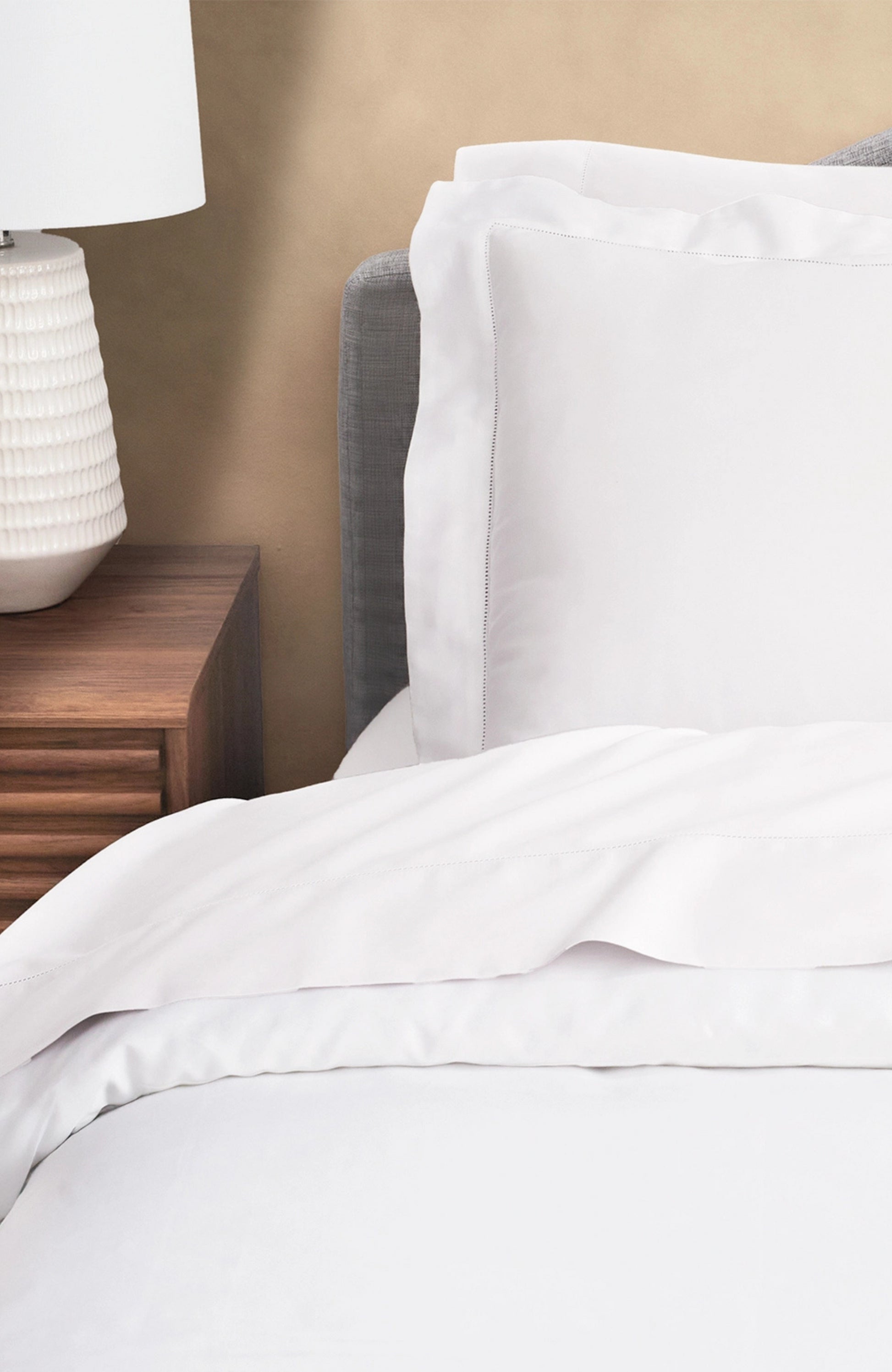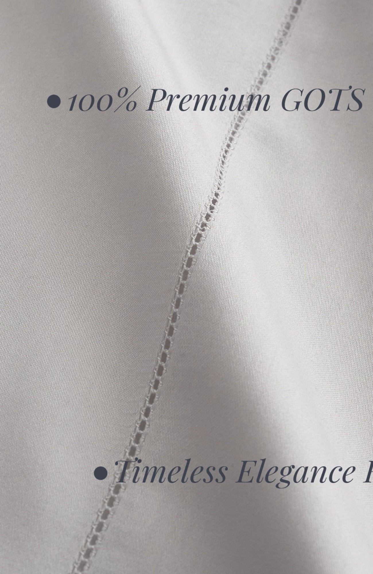 Finished with delicate hemstitched details, these breathable, non-toxic sheets are gentle on sensitive skin and designed for timeless comfort.