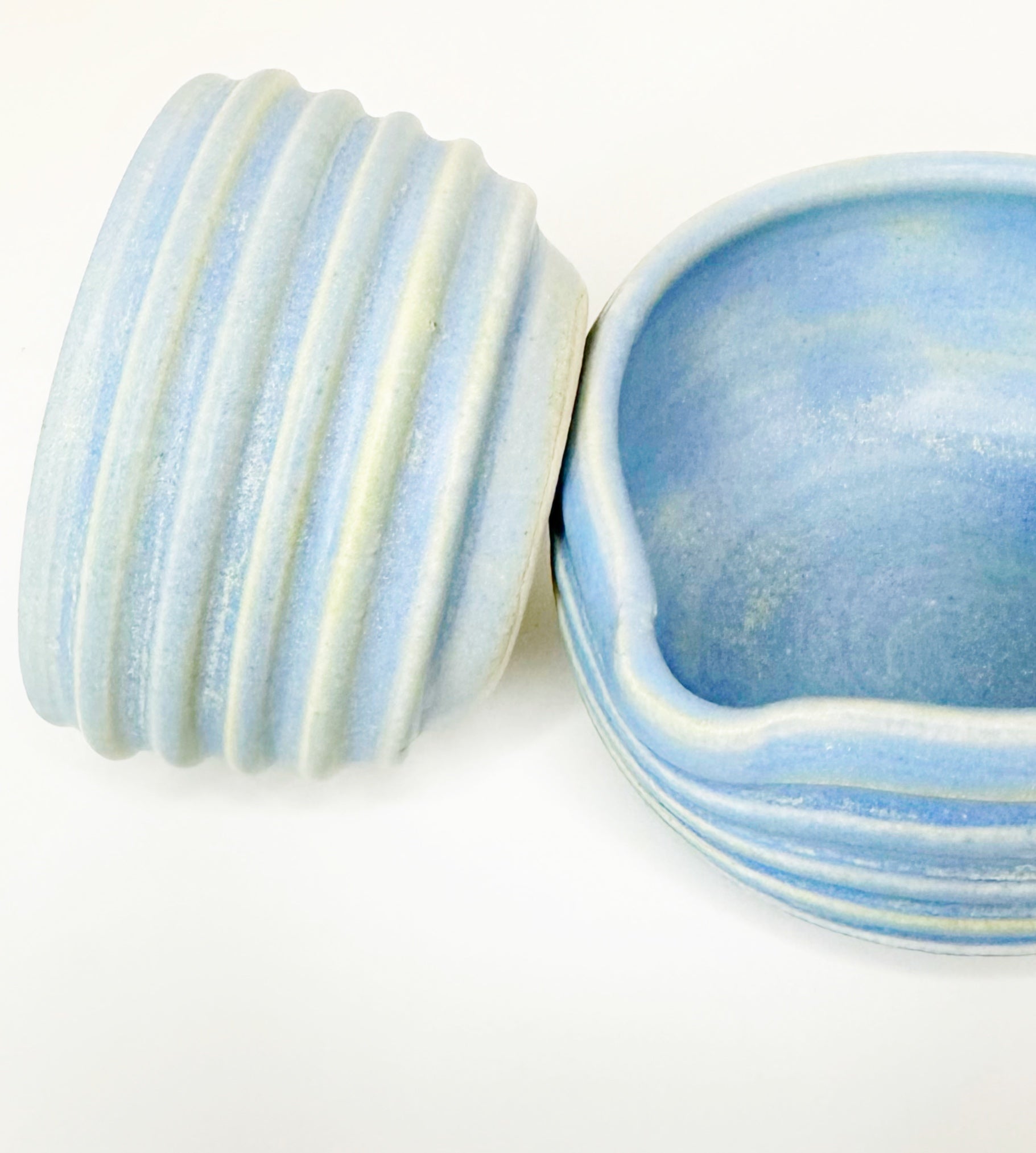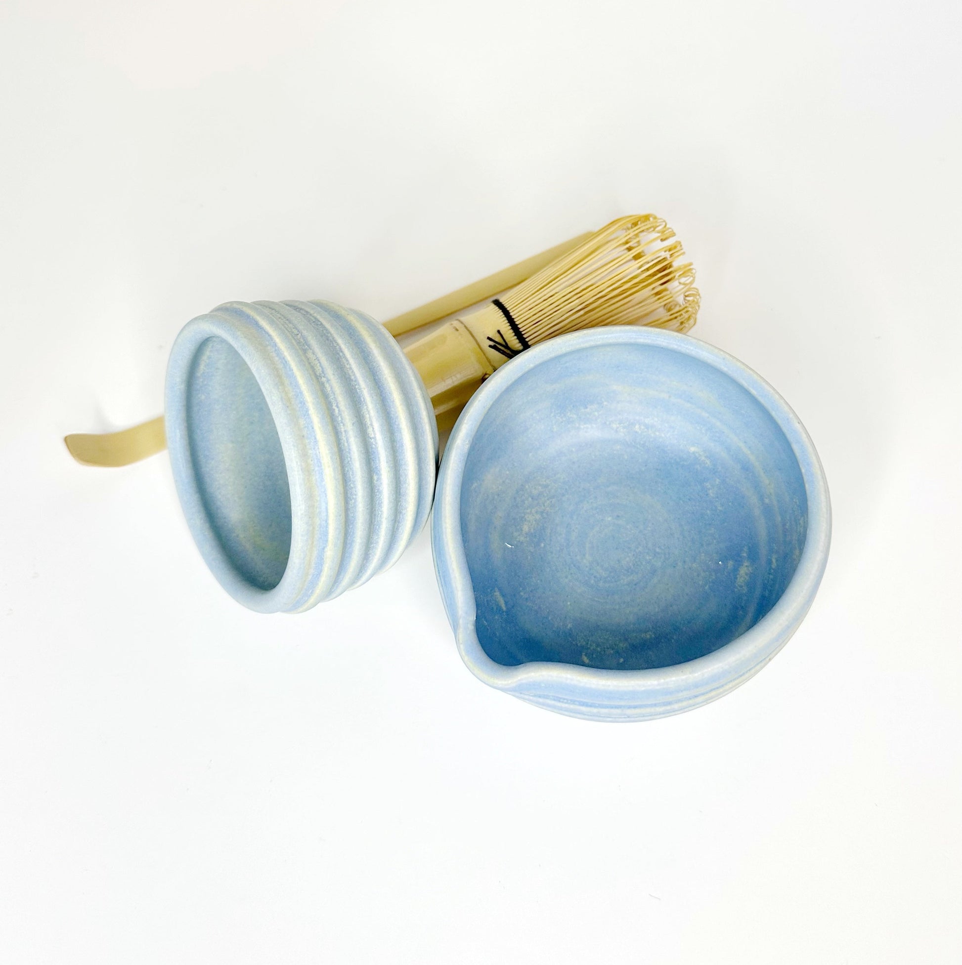 Elevate your matcha experience with our Matcha Bowl Set. Each set includes two handcrafted bowls (NO WHISK INCLUDED). The larger bowl is perfect for pouring matcha, while the smaller bowl serves as a convenient spot to hold matcha powder or keep your matcha whisk safe. Due to the artisanal nature of these pieces, slight variations in height and size are to be expected, a charm of handmade craftsmanship. Beyond matcha, these versatile bowls are perfect for enjoying small servings of your favorite dishes. Mix and match with our Hunny Collection to create unique combinations. Materials & Care: CLAY: BB Mix + Sand GLAZE: Semi-Matte Blue Handcrafted from USA-sourced clay. Unique, mold-free, small-batch production. Glazed finish (not microwave-safe). We recommend handwashing to prevent surface decay and scratches. Please note that slight variations in size may occur due to the clay's natural behavior during the drying and firing process.