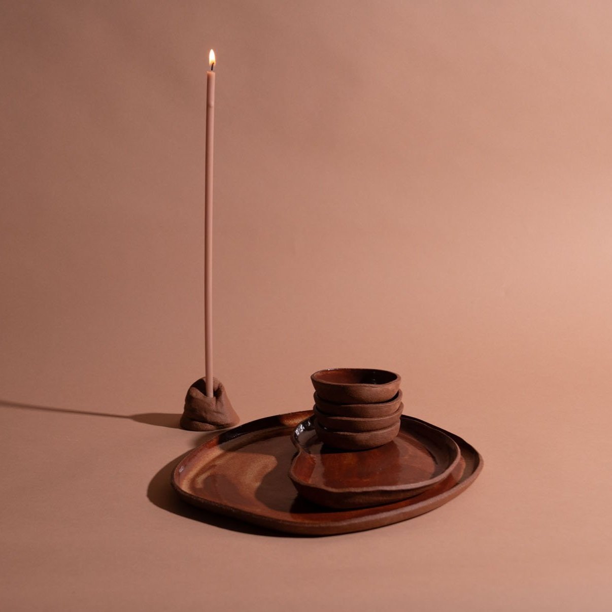An oversized, shallow stoneware platter designed to ground a table — for serving or sharing. The Impression Platter takes its name from the subtle marks left by touch, movement, and time — gestures echoed in the desert landscape. Made from durable stoneware ceramic, its wide surface and gentle slope create a natural frame for food or objects — a quiet imprint of both form and use. Each piece is handmade in Brooklyn — subtle variations in form and glaze are part of its character.