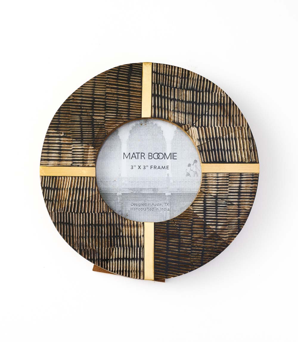 Kerala 3x3 Picture Frame - Carved Horn, Brass Inlay