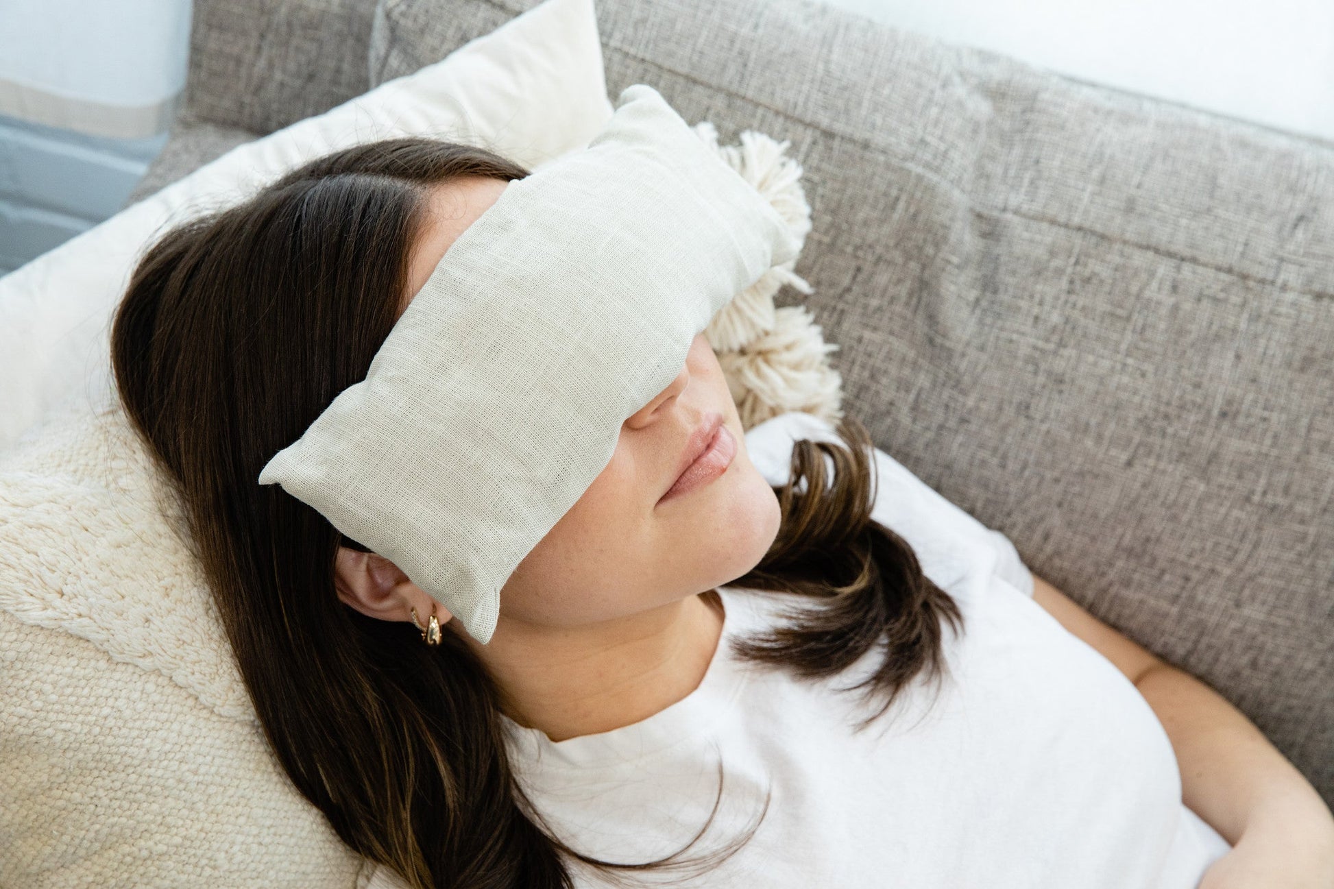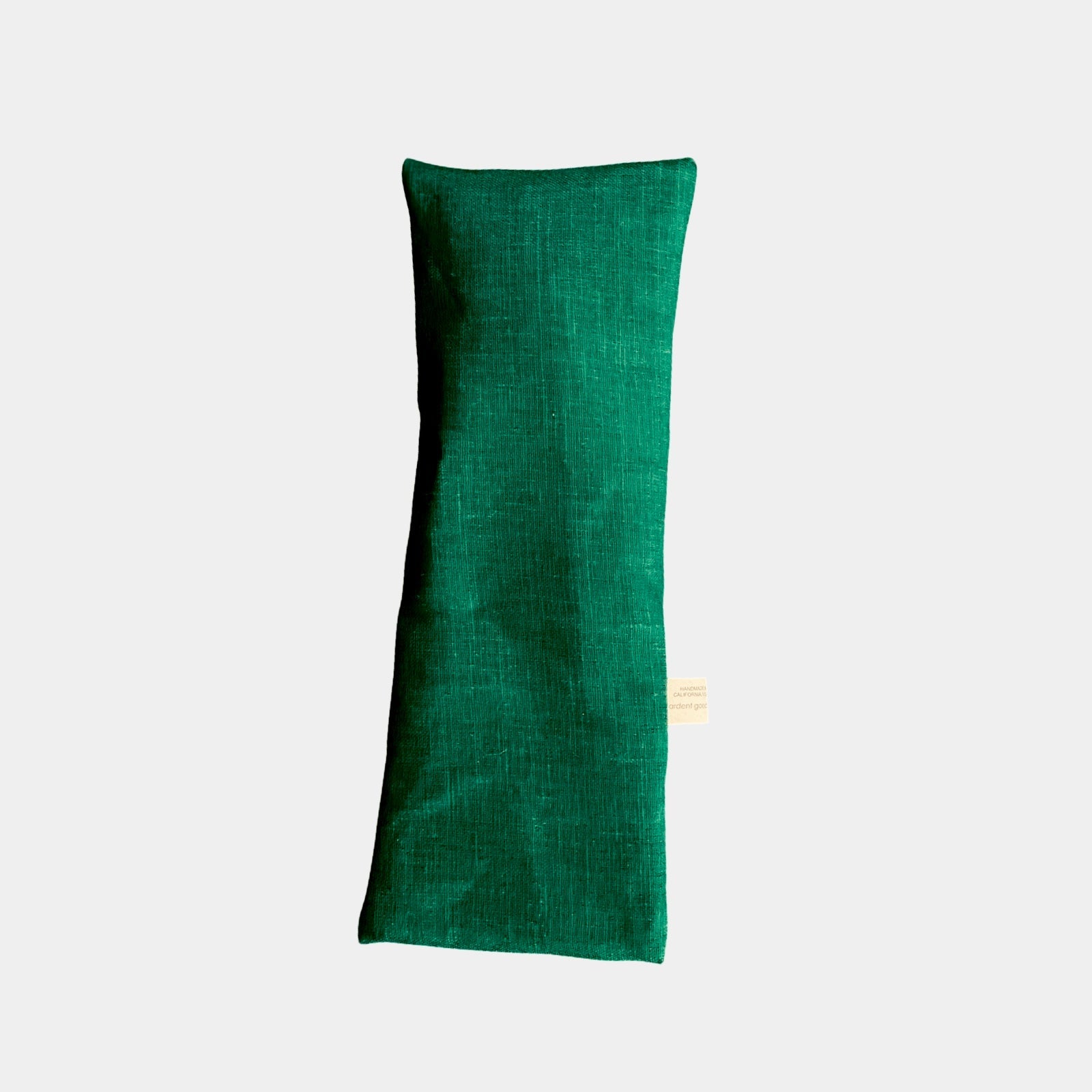 Relax puffy eyes and relieve stress with lightweight pressure an eye pillow provides. Use during your Savasana or to help rest and relaxation. The linen slipcover allows for washing, made of linen that gets softer with every wash. Need to know Made of 100% linen Insert made of cotton and filled with flaxseed apx 10" x 3.5" Handfilled and weighs aproximately 8.5 ounces Insert must keep dry at all times
