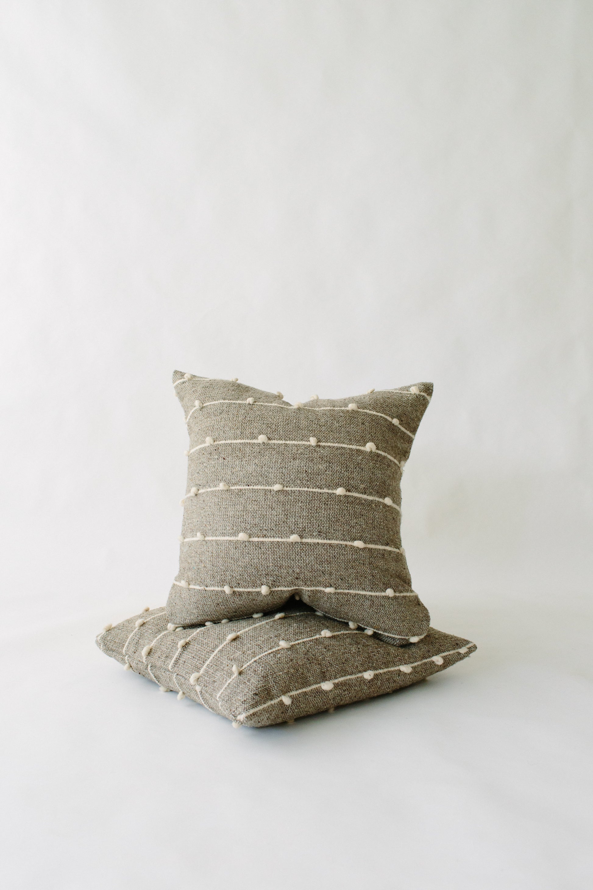 Transform your living space into a cozy haven with the LOOM Imports Grey Loop Pillow. Imagine sinking into your sofa after a long day, the soft, organic wool of this pillow gently supporting your head. Its unique, hand-woven texture, created using traditional heritage craft methods, adds a touch of artisanal charm that elevates any room. This isn't just a pillow; it's a conversation starter, a piece of art that brings warmth and character to your home. Its neutral grey tone and subtle loop design effortlessly complement any decor, making it a versatile addition to your family room, bedroom, or even a child's reading nook. Bring the beauty of handcrafted quality into your everyday life and create a more inviting atmosphere for everyone to enjoy.