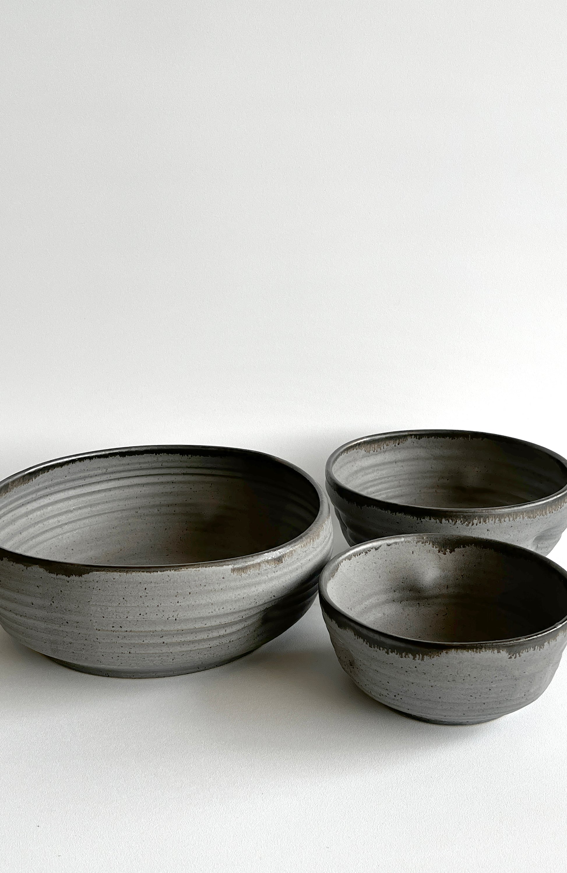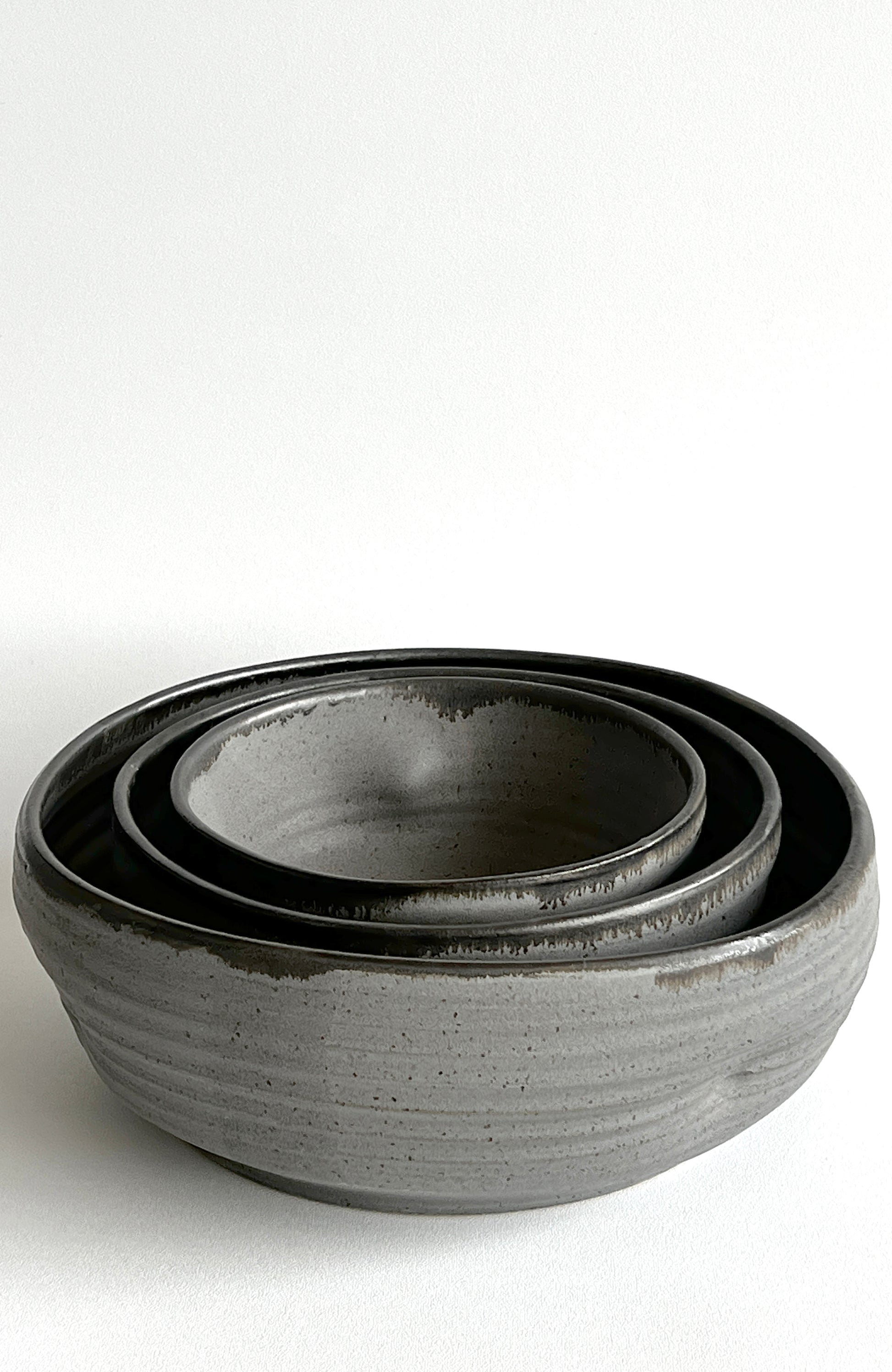 The Luna Nesting bowls are available for purchase as a set or individually. With three varying sizes, they can cater to all your serving necessities. Measuring around 5, 7, and 9 inches in diameter, each boasts throw marks and finger indentations for a natural, imperfect look. These bowls are meticulously fashioned to withstand microwaves and dishwashers. *All of my products are made by hand and will vary. Each glaze firing varies as well. Please keep this and my refund policy in mind when you place your order. Thank you.
