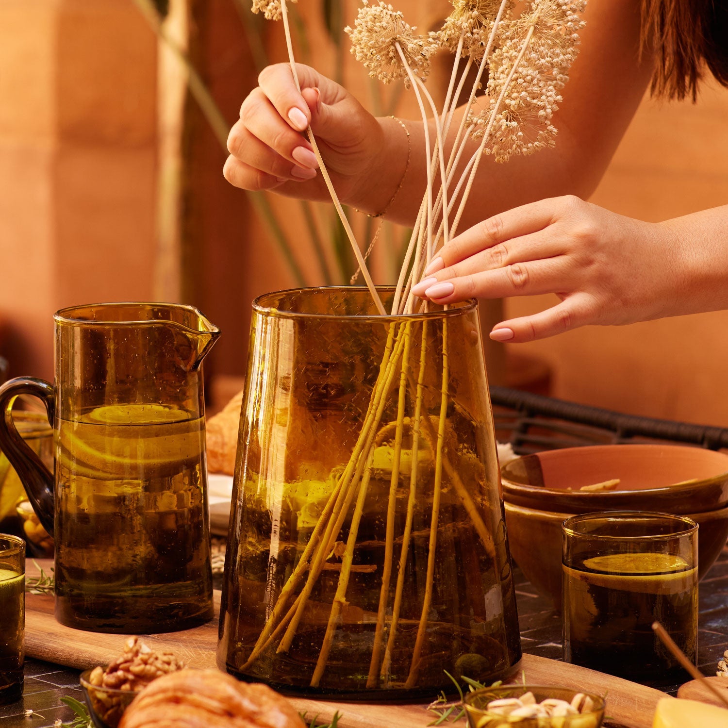 - **Unique, Handcrafted Beauty:** Each vase is mouth-blown by artisans in Morocco, ensuring a one-of-a-kind piece with its own subtle variations in size, color, and texture, adding authentic character to your home.