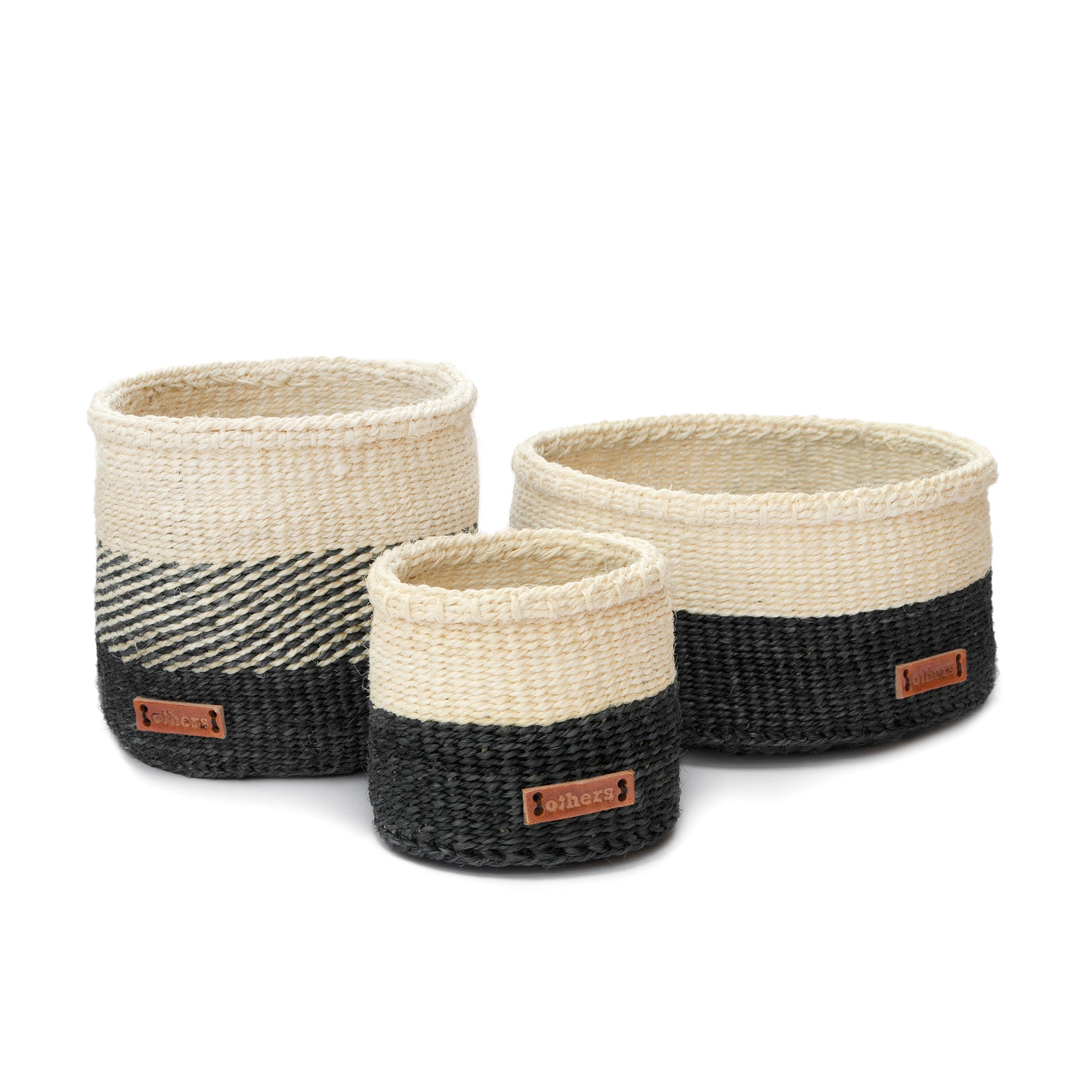 These beautiful baskets come in three sizes and are handmade by our groups in Kenya. The baskets are made from the local sisal plants which can be found everywhere. Our producers harvest the sisal, extract the fibers, dye them, spin threads and hand-weave the final products. These traditional skills are passed through the generations, and the women often come together and work in fellowship with each other. Through flexible working conditions and fair wages our goal is to contribute to economic empowerment for the artisans. Sisal Basket LARGE Made in: Kenya Material: Sisal Size: 10x 22 cm Color: Natural/black