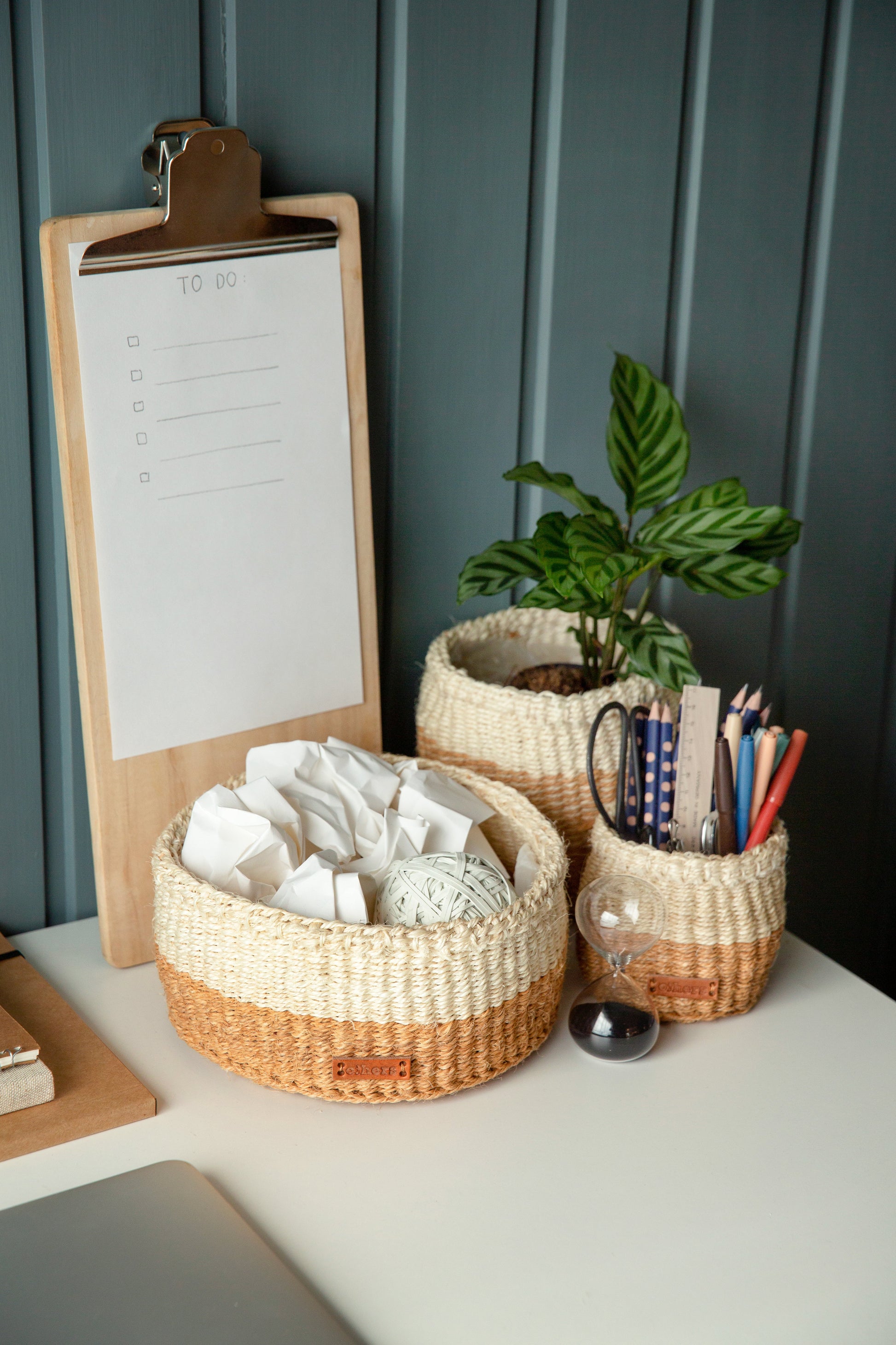 These beautiful baskets come in three sizes and are handmade by our groups in Kenya. The baskets are made from the local sisal plants which can be found everywhere. Our producers harvest the sisal, extract the fibers, dye them, spin threads and hand-weave the final products. These traditional skills are passed through the generations, and the women often come together and work in fellowship with each other. Through flexible working conditions and fair wages our goal is to contribute to economic empowerment for the artisans. Sisal Basket Sm Made in: Kenya Material: Sisal Size: 11 x 11 cm Color: Natural/beige