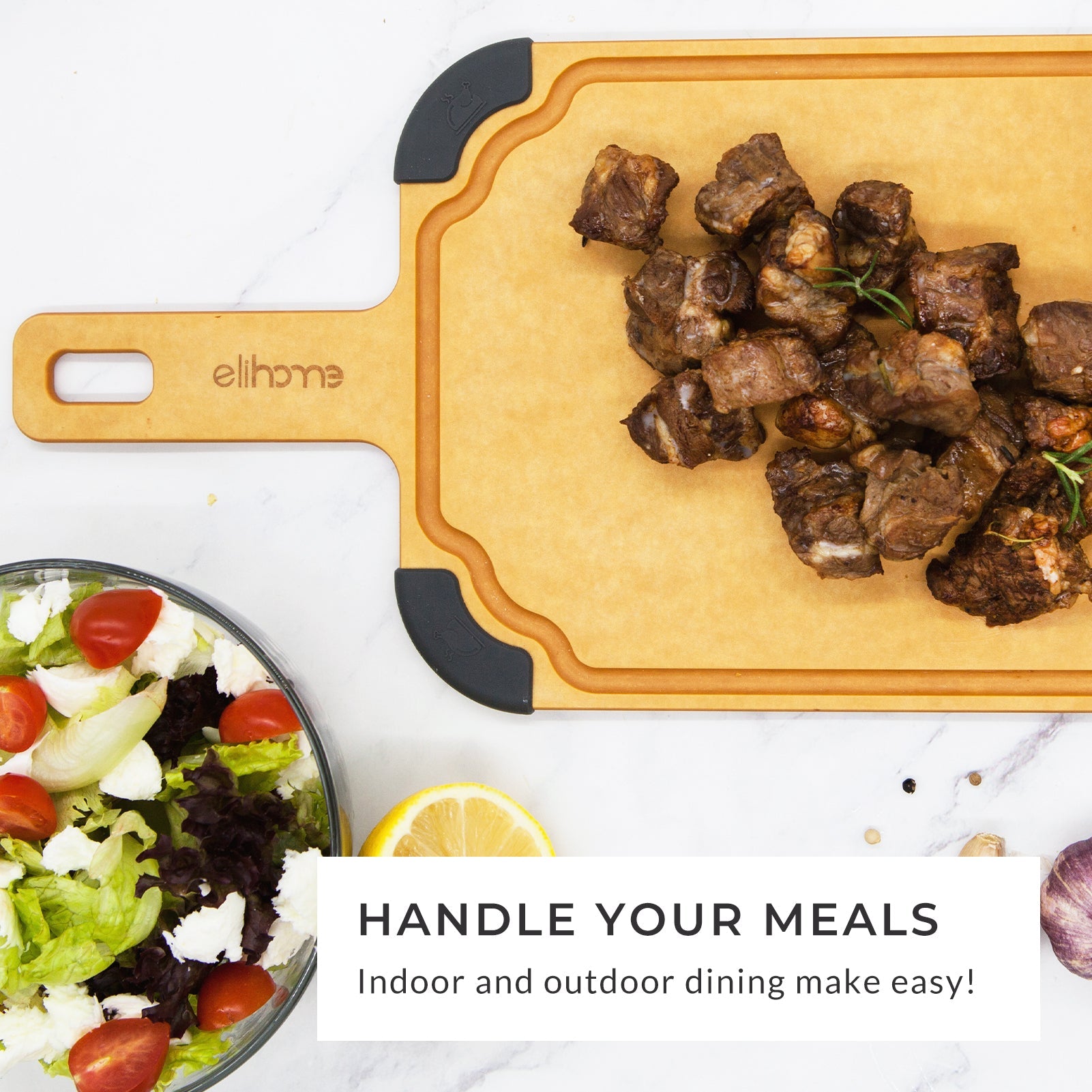 - **Effortless Serving & Carrying:** The built-in handle and paddle design make it easy to transport food from prep to table, doubling as a stylish serving platter.