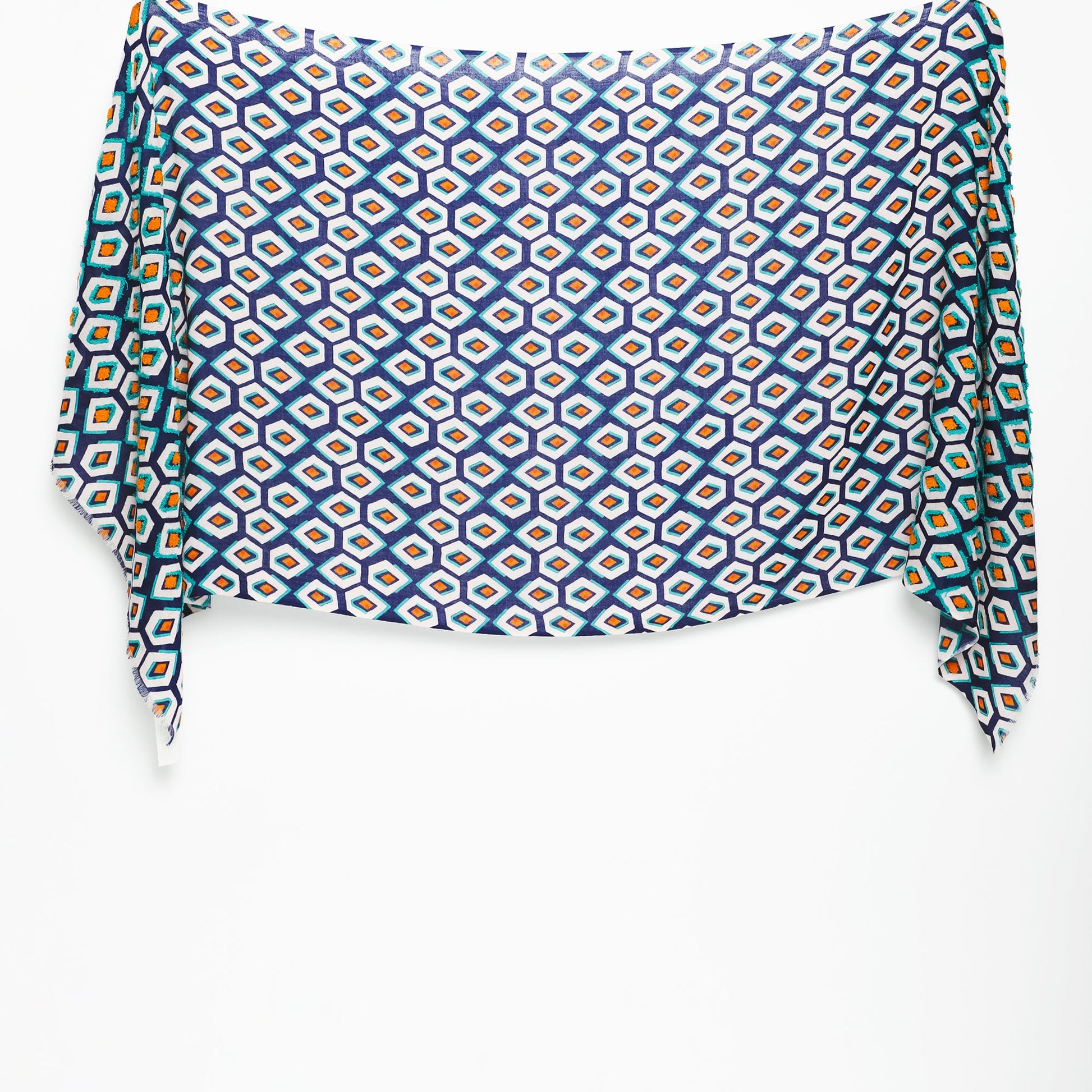 Add a touch of sophistication and warmth to your winter wardrobe with this Orange and Blue Pentagon Embroidered Scarf. Crafted from a soft and cozy fabric, this geometric scarf is rectangle shaped with chic embroidered details. Perfect for making a subtle fashion statement, this scarf will keep you comfortable and stylish all winter long. DETAILS • Navy Blue Embroidered Rectangle Scarf • MATERIAL: 100% Wool • SIZE: 30" X 80" • CARE: Hand wash cold, do not bleach, dry flat, low iron or dry clean • Designed in Los Angeles • Made in India