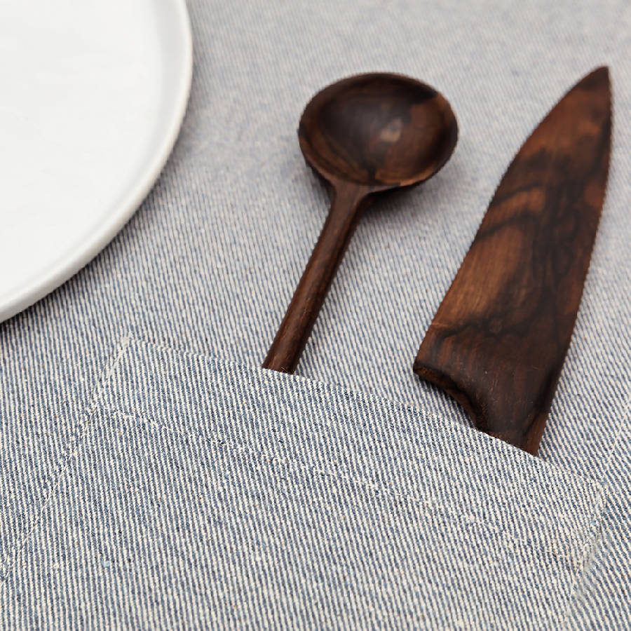 Rustic Placemats made with Upcycled Denim and Cotton, with a stylish pocket for placing cutlery or napkins. Beautifully designed for casual dining, elegant table setting, farmhouse table decor, rustic weddings and celebrations, and daily use at home.