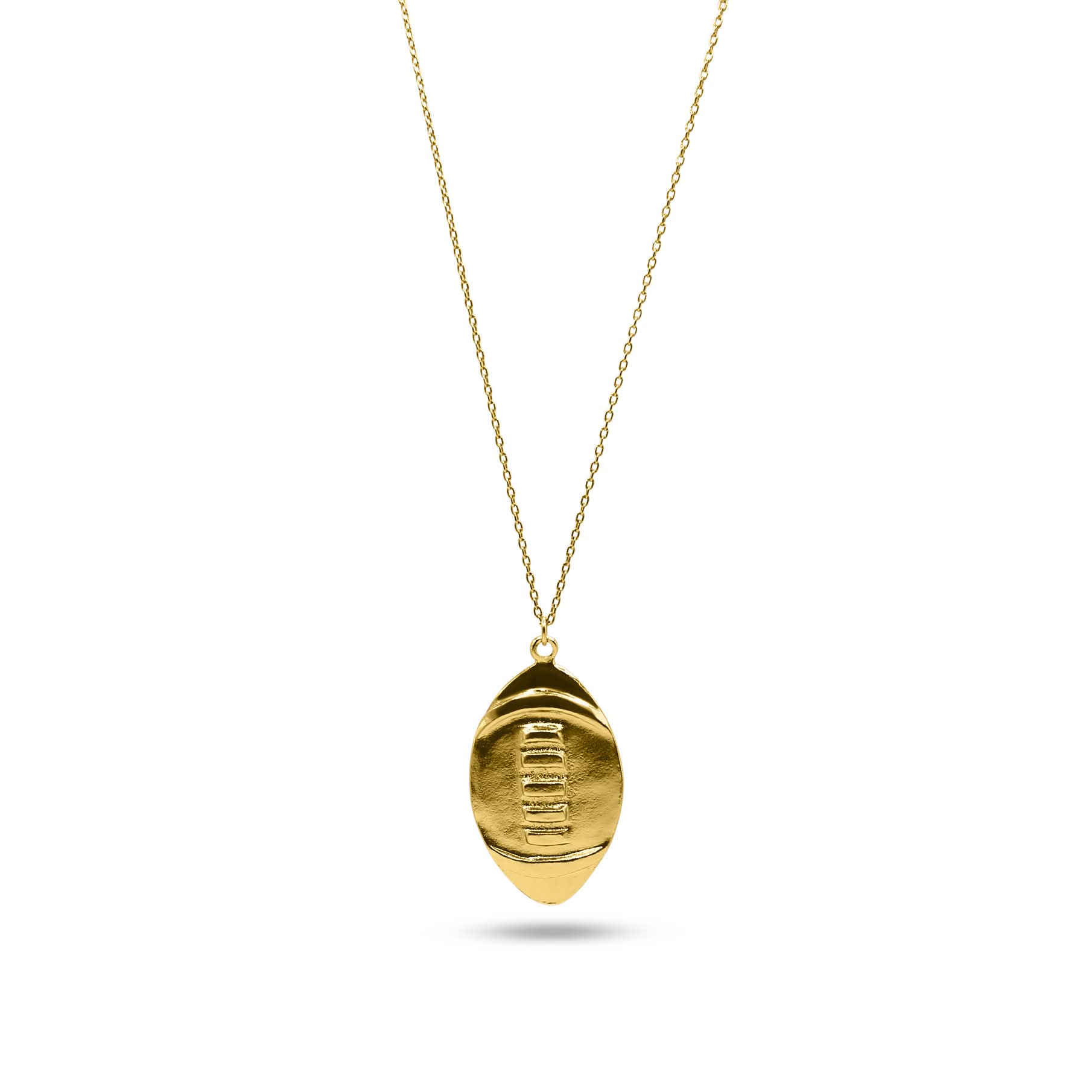 The Playmaker Necklace is our sleek, cool-girl take on game day style. Designed on a dainty 14k gold-filled chain, it features our exclusive ceramic gold-plated football charm. Lightweight, layer-able, and just the right amount of sporty, the Playmaker is perfect on it's own or styled with statement chains.
