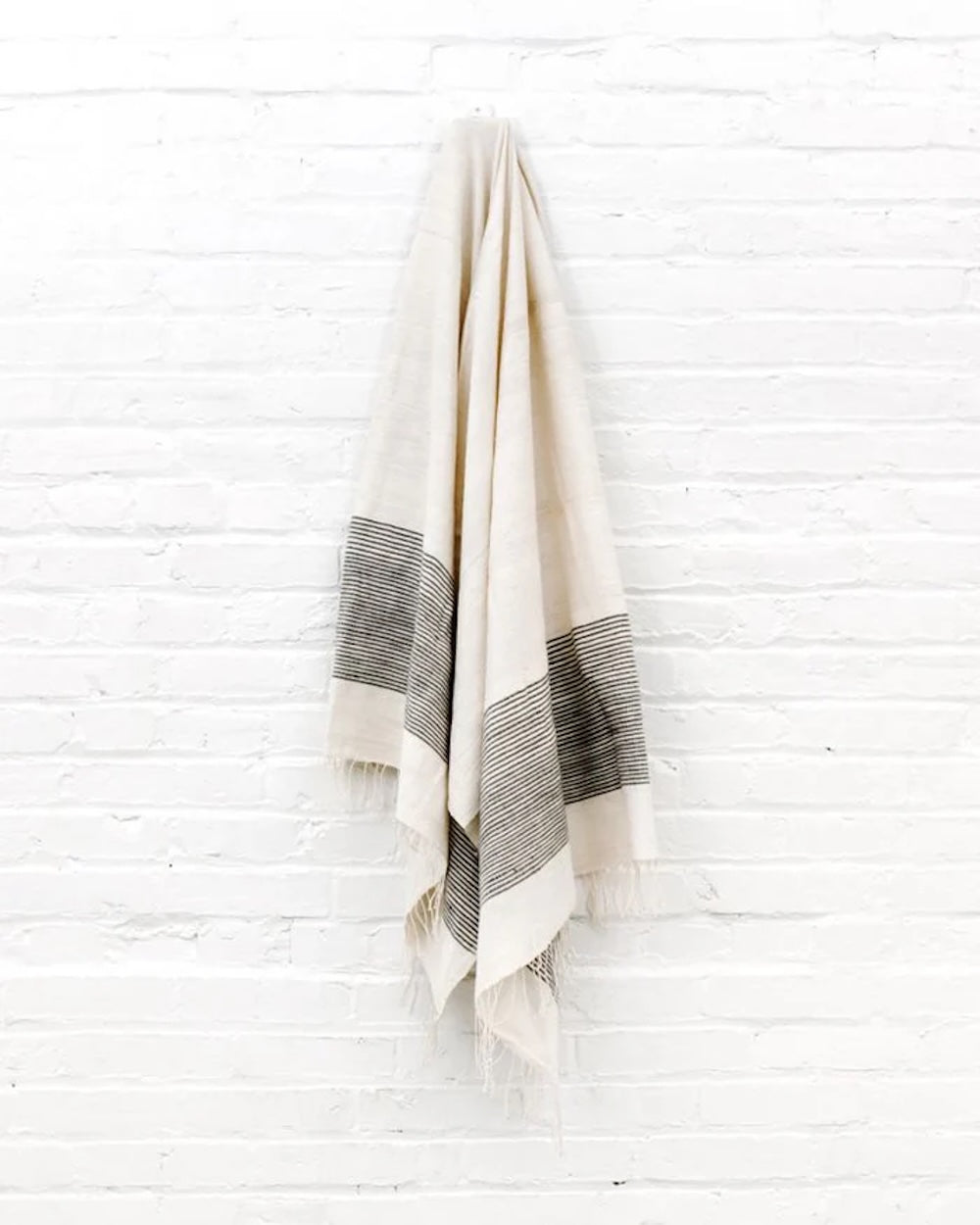 These versatile artisan-made pieces can be used as bath towels, lightweight shawls and accent throws. Each is hand-woven in Ethiopia using time-honored weaving traditions and AZO-free dyes. Hand-spun Ethiopian cotton adds a uniquely rich texture that will continue to soften and become more absorbent with each wash/dry.