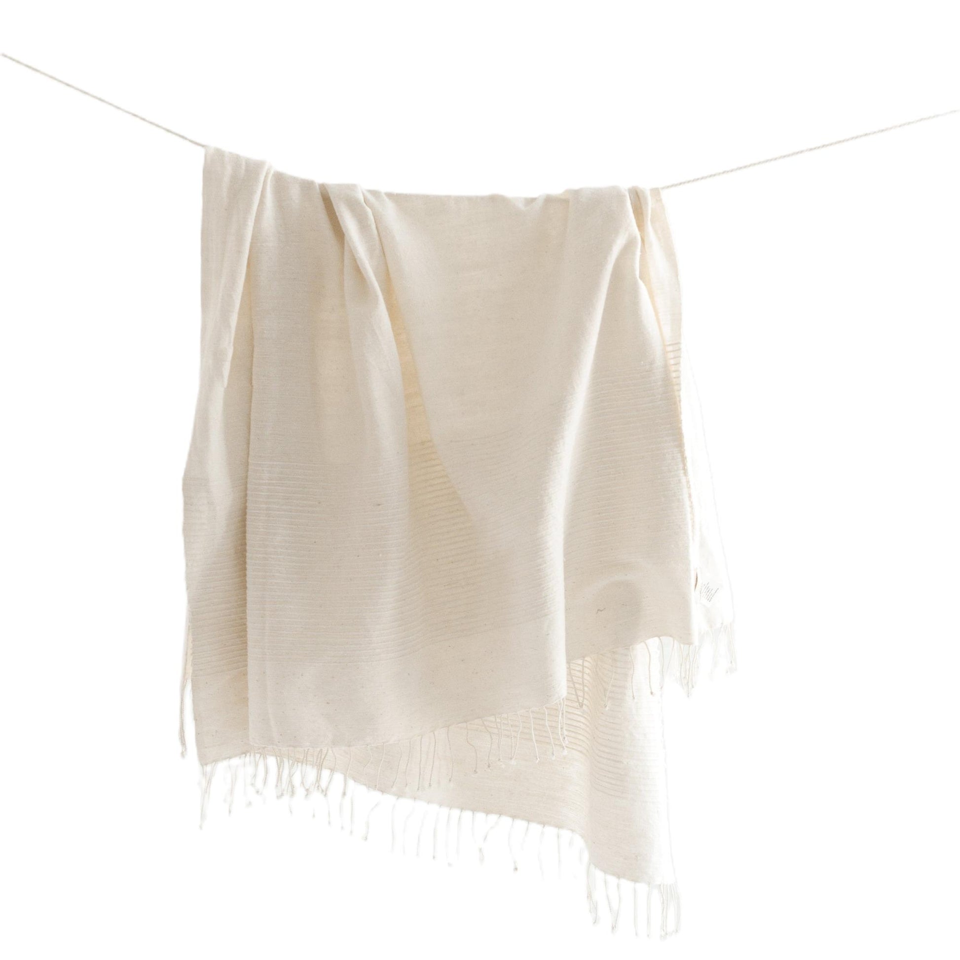 Classic, timeless, versatile. The Riviera throw features natural hand-spun cotton accented with blocks of subtle ribbed accents. This hand-woven throw is guaranteed to be one of the most useful pieces in your home. Its size, softness and light weight make it the perfect cozy wrap and the ultimate travel companion. Hand-spun Ethiopian cotton adds a uniquely rich texture that will continue to soften and become more absorbent with each wash& dry. Yes, it's machine washable!