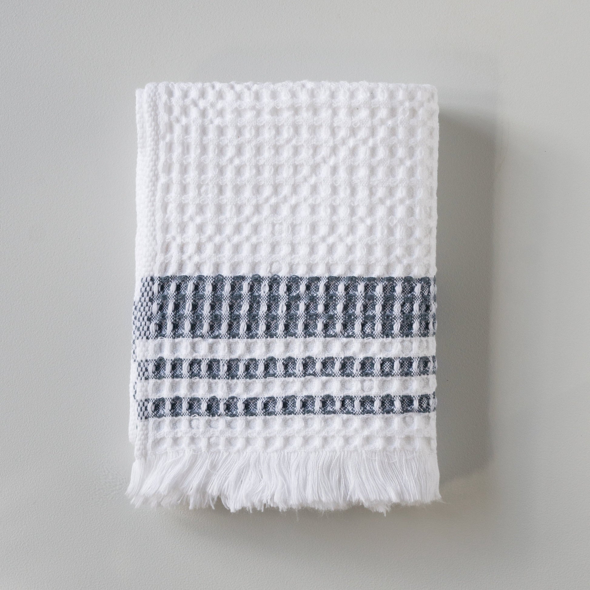 Luxuriously sized waffle weave towels woven with GOTS-certified 100% organic cotton. Hemmed with an eyelash fringe. Designed, woven and made in South Africa.