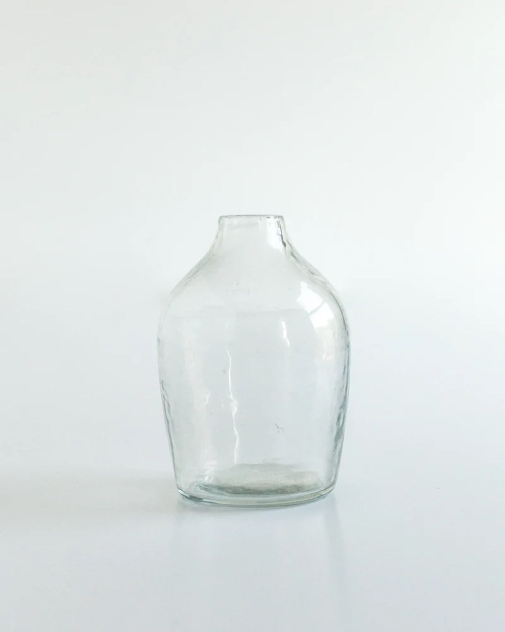 Introducing our exquisite collection of handblown hammered glass bud vases, a perfect blend of ethical craftsmanship and sustainable design. Each vase is meticulously hand-crafted from 100% recycled glass, offering a unique hand-hammered texture in three complimentary shapes. Ideal for showcasing a single bloom or a small bouquet, these bud vases bring a touch of subtle texture to any space while honoring a commitment to people and the planet. Ethically hand-crafted in India. Please note that due to the artisanal nature of this product, slight variations in size and color will occur.