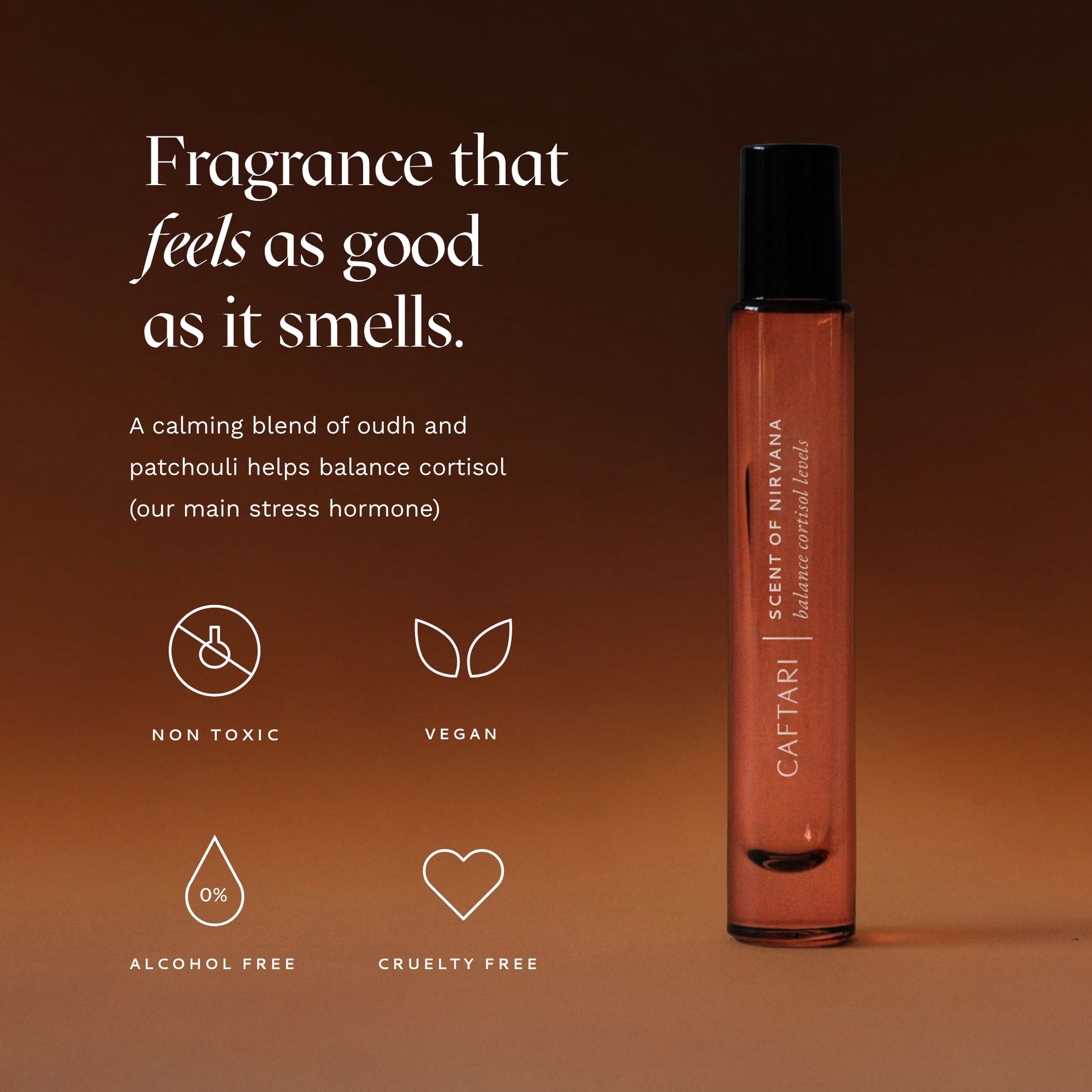 A calming blend of oudh and patchouli helps bring cortisol into balance. Paired with vitamin E–packed jojoba, it rolls on as both care and fragrance.