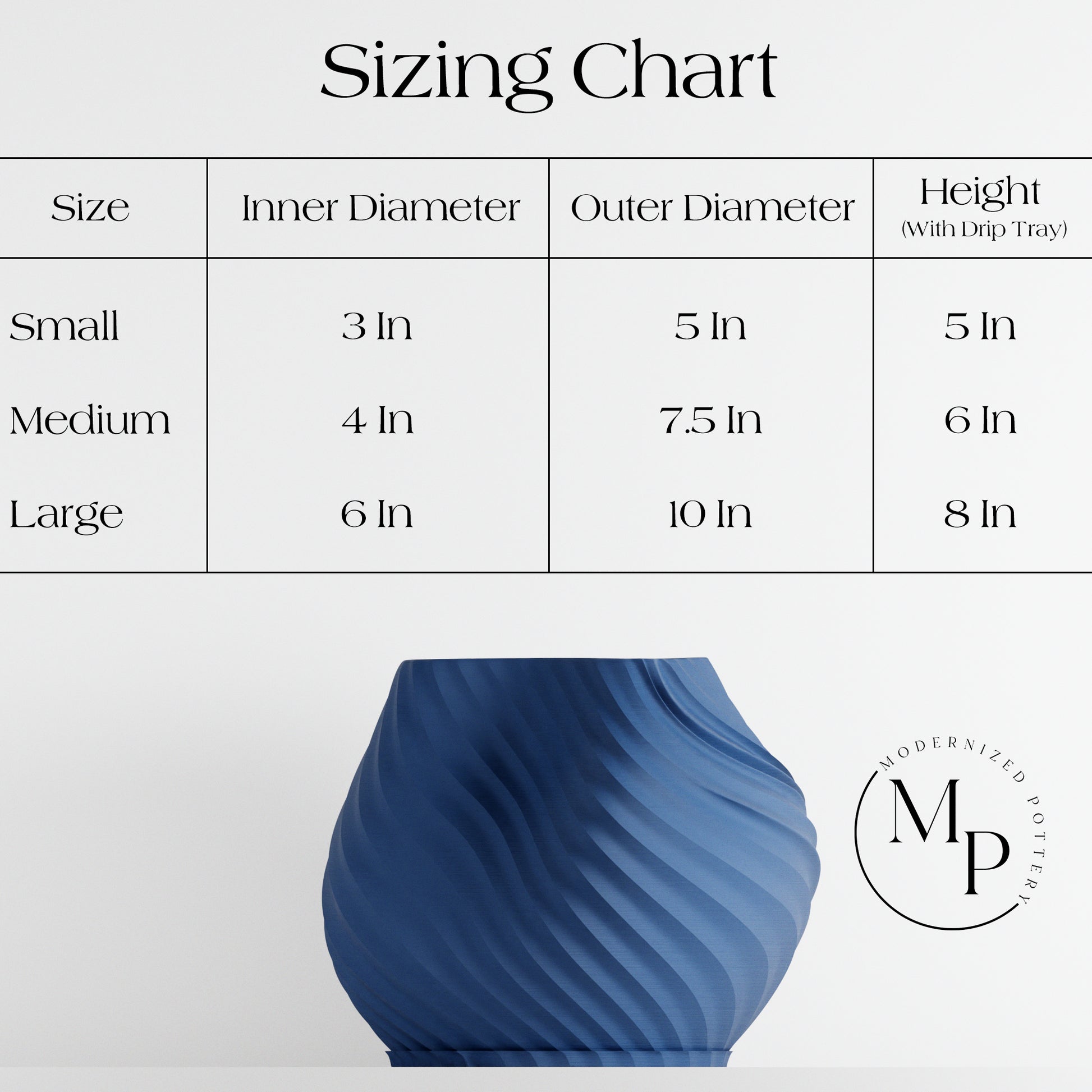 * **Large:** Height: 8 inches | Width: 9.5 inches | Depth: 9.5 inches