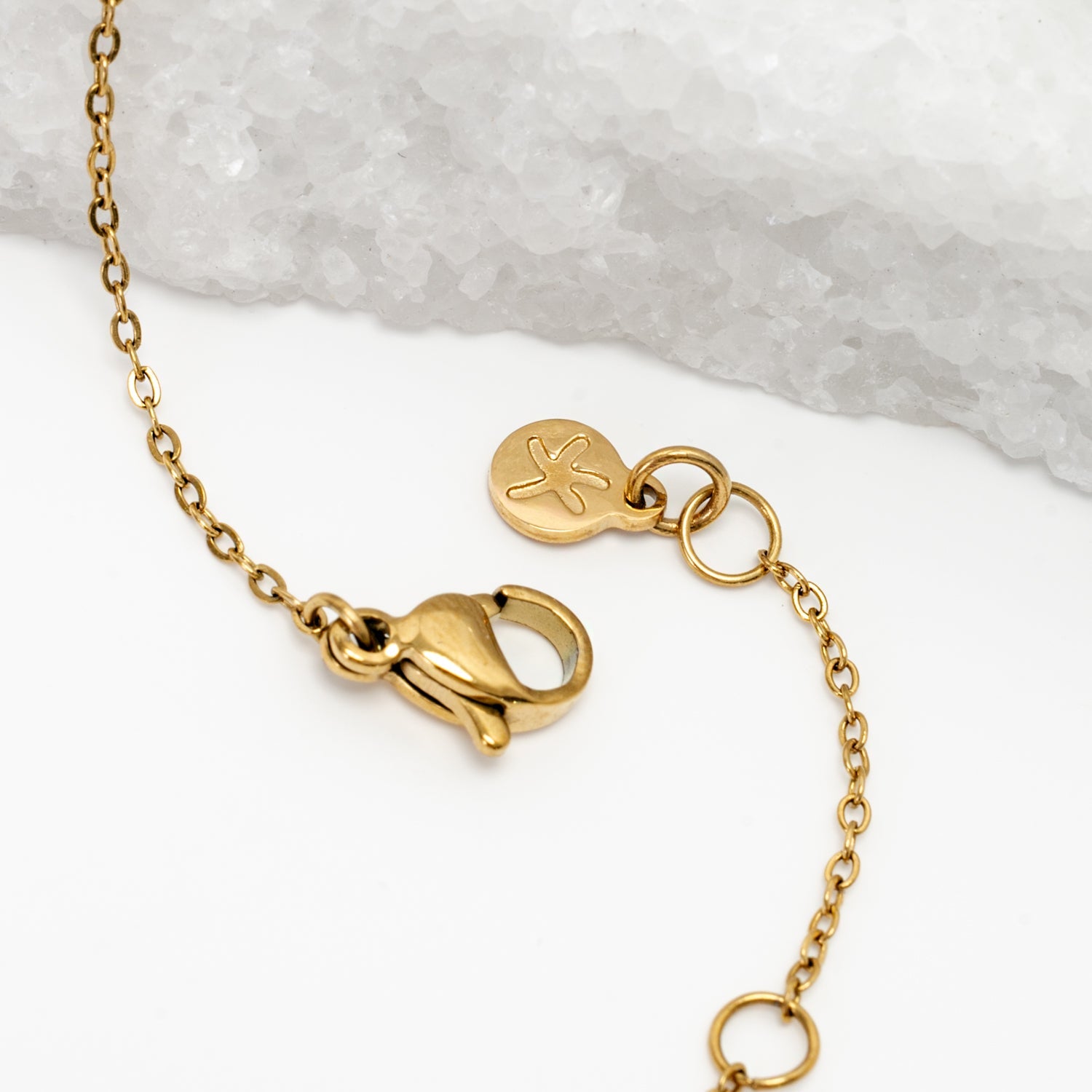 Shine Bright Cross Pendant is a show-stopping piece perfect for styling and gifting alike! This shining 14K gold plated reversible pendant features a cross set in iridescent mint resin on one side and a shimmering zircon cross set in gold on the reverse. This outfit centerpiece floats along an adjustable 14K gold plated chain making it perfect for layering and daily wear alike. When you purchase the Shine Bright Necklace to gift or to keep, you help survivors shine as they develop life-transforming lives of freedom. Thank you! Box size and color may vary. Materials: 14k gold plated stainless steel enamel necklace Hypoallergenic; lead and cadmium free with nickel content less than 100 ppm. Size: 16-18 inches