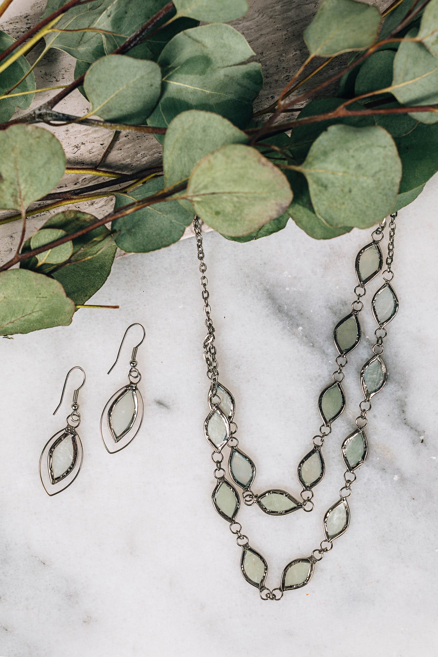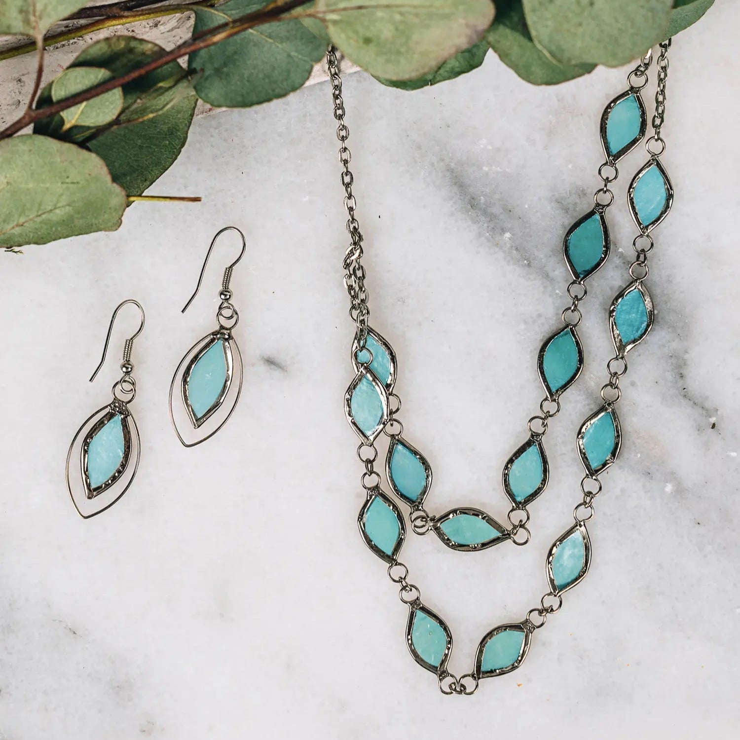 These earrings have a soft shimmer that can only be achieved through use of capiz shell. The thin shell of the windowpane oyster had once been used for windows in houses, before glass windows became available in the Philippines. Now it can be dyed a variety of colors for use in unique jewelry pieces such as this.