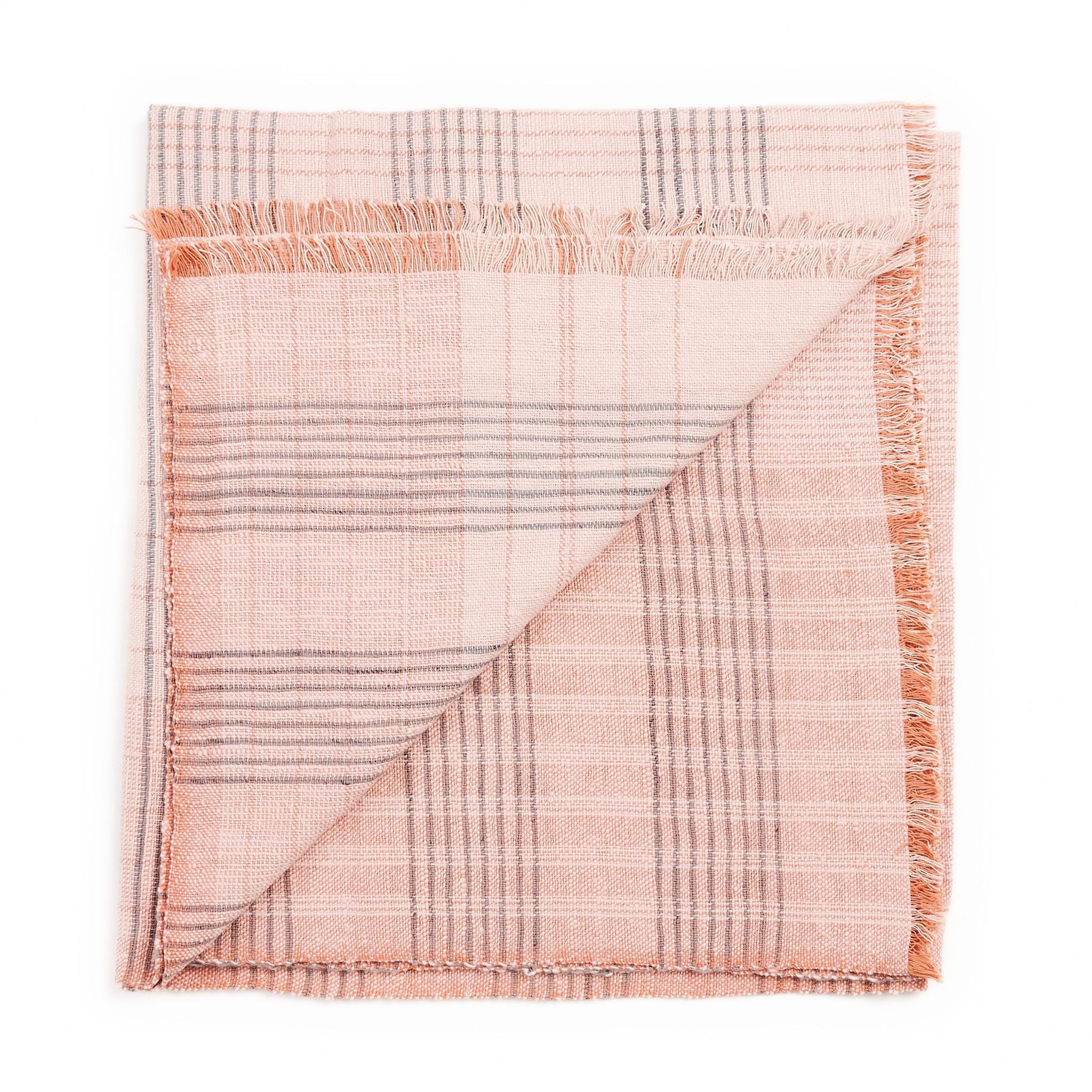 Silica Chalk Off White Throw is a modern take on combining stripes & checks pattern in a serene color palette of dusty rose salmon and grays. Fine detail of hand weaving is done meticulously on a handwoven textile. Each piece is 100% handmade making it a unique sustainable throw which is both classic and minimal modern in its appeal. Silica Chalk throw is soft to touch and wears well over time. Requiring attention to detail and finishing, this throw luxuriously combines heritage value. high quality craftsmanship & it is reversible to arrange and use. Fringes are kept short for a modern look. For this textile, we are using only the highest quality of 100% pure merino from Nepal and linen from Belgium. Eco friendly dyes Swiss dyes are specifically engineered to promote the lifespan of each throw. As this luxurious piece is completely handmade from start to finish, each piece is unique. Classic in design, Silica Chalk is a timeless throw / blanket will complement your personal or living spaces, is a thoughtful gift , directly supporting artisan communities ethically. Throw Size: 110 cm X 210 cm Material: 100% soft merino from Nepal , 100% pure linen from Belgium. Colors: Off White and Gray Artisan base: Ethically & responsibly handwoven by artisans in Nepal. Wash care: Gently hand wash using gentle detergents. Hang dry in cool shaded place or delicately dry clean only. What Makes Your Purchase Sustainable ? Eco friendly dyes free of toxic chemicals used. Support employment of women artisans. 100% handmade ethical manufacturing process by artisans. Uses only 100% natural responsibly sourced materials. Small batch production ensures higher quality & less wastage.