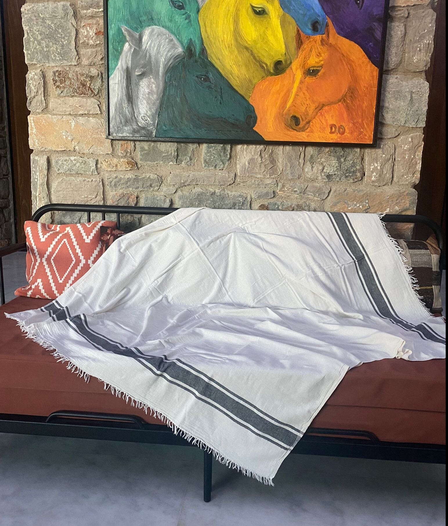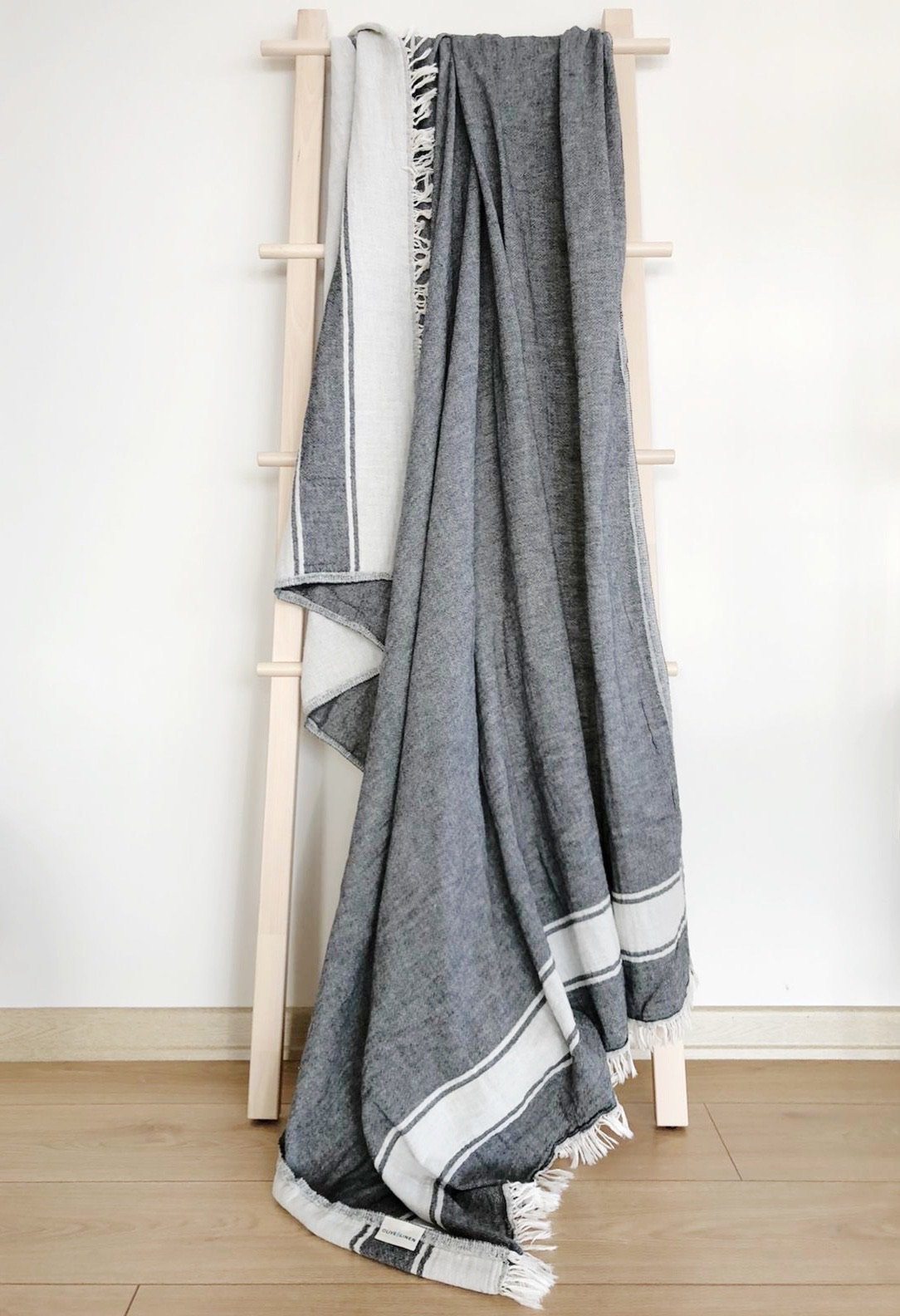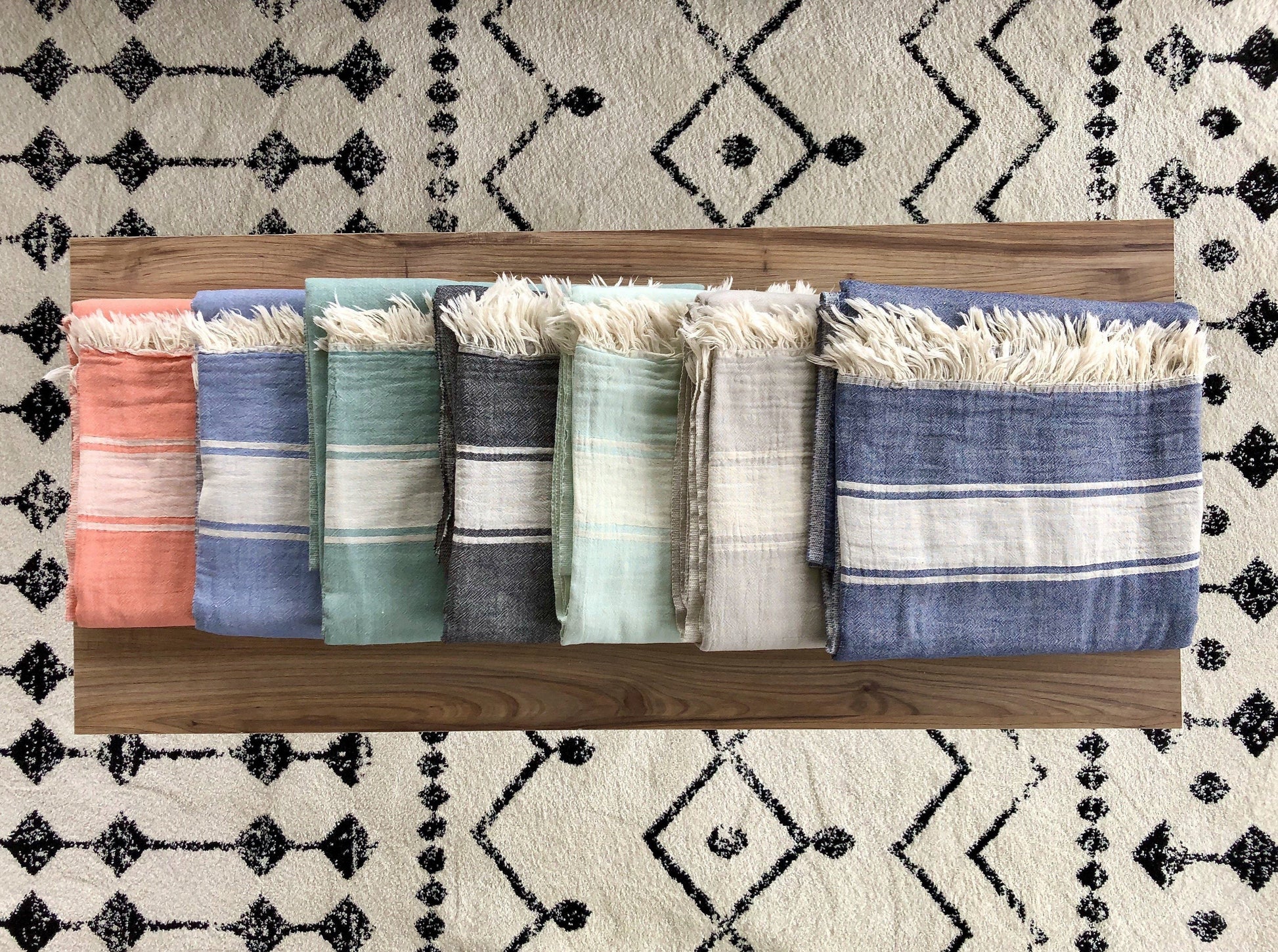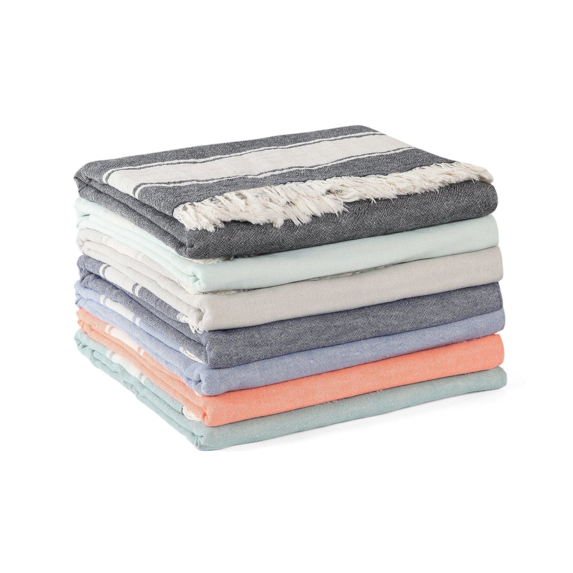 Expertly hand crafted from 2 ply gauze fabric woven from premium long-staple Turkish cotton, the Summer Throw is reversible with contrasting colors on each side. 2 ply gauze construction from 100% long-staple Turkish cotton Yarn died and garment washed for added softness Naturally soft texture and frayed edges add a relaxed appeal Super soft, breathable and luxurious Feels fresh and cool for summer yet substantial enough for winter Double-sided for added color options Perfect addition for your sofa, bed or baby's nursery OEKO-TEX® STANDARD 100 certified, IS025 168850 OETI Free of harmful chemicals and dyes – good for you and the environment Made in Turkey ______________________________________________ Materials: 100% Premium Turkish Cotton Size: 59"X72" Weight: 500g/17.6oz Care: Hand wash in cold water, hang to dry Handcrafted by Olive and Linen ______________________________________________