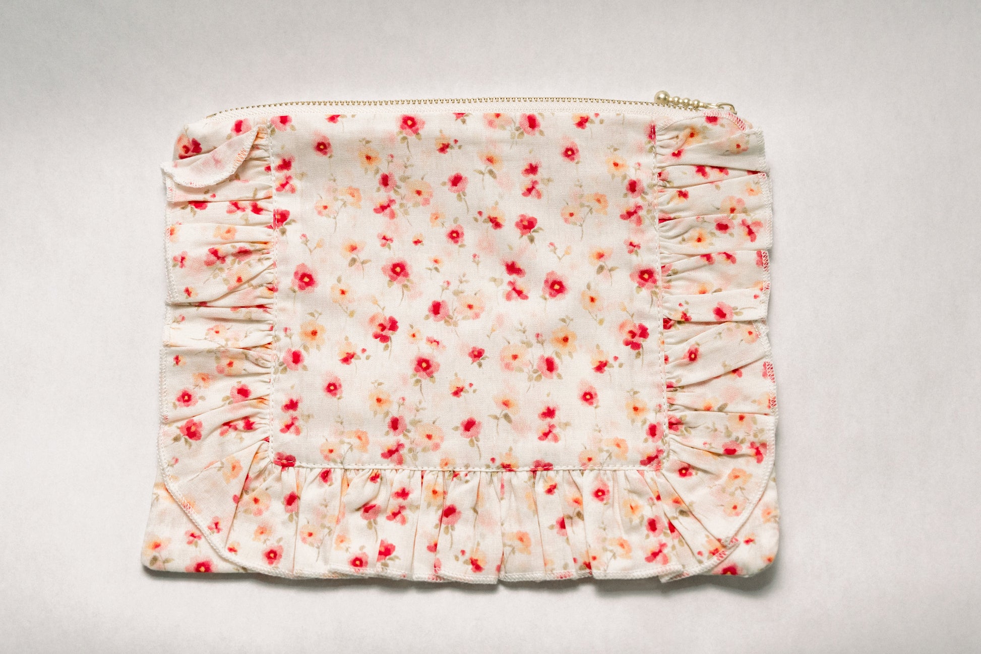 Sunset Petal | Timeless Floral Ruffle Zipper Pouch